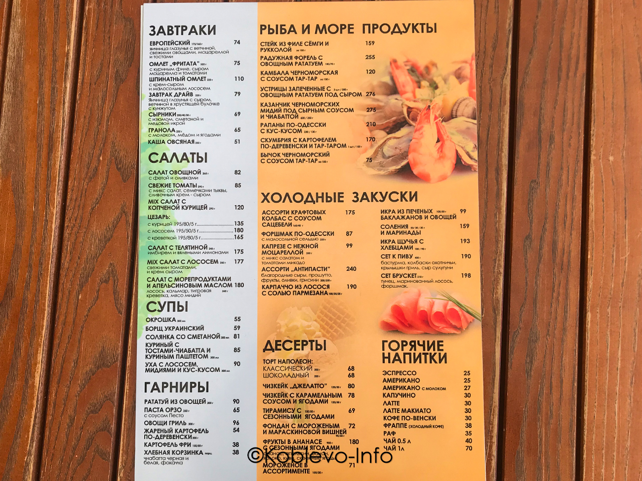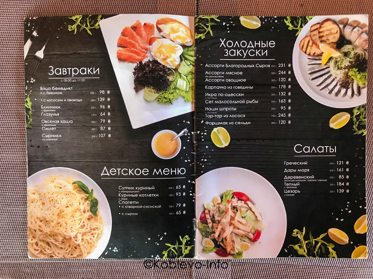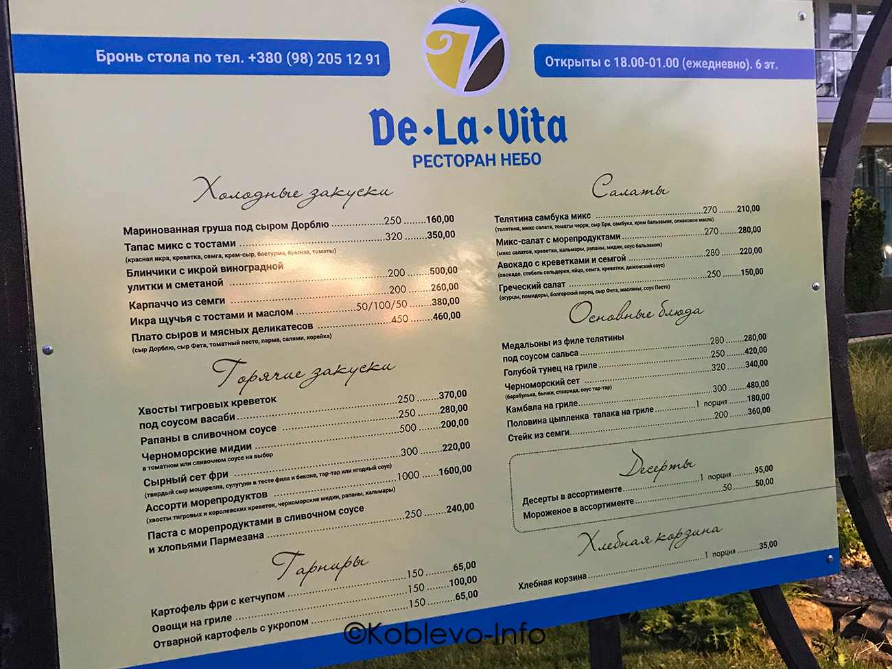 Цены 2022 в ресторанах Коблево
