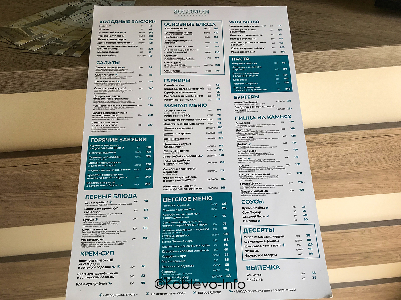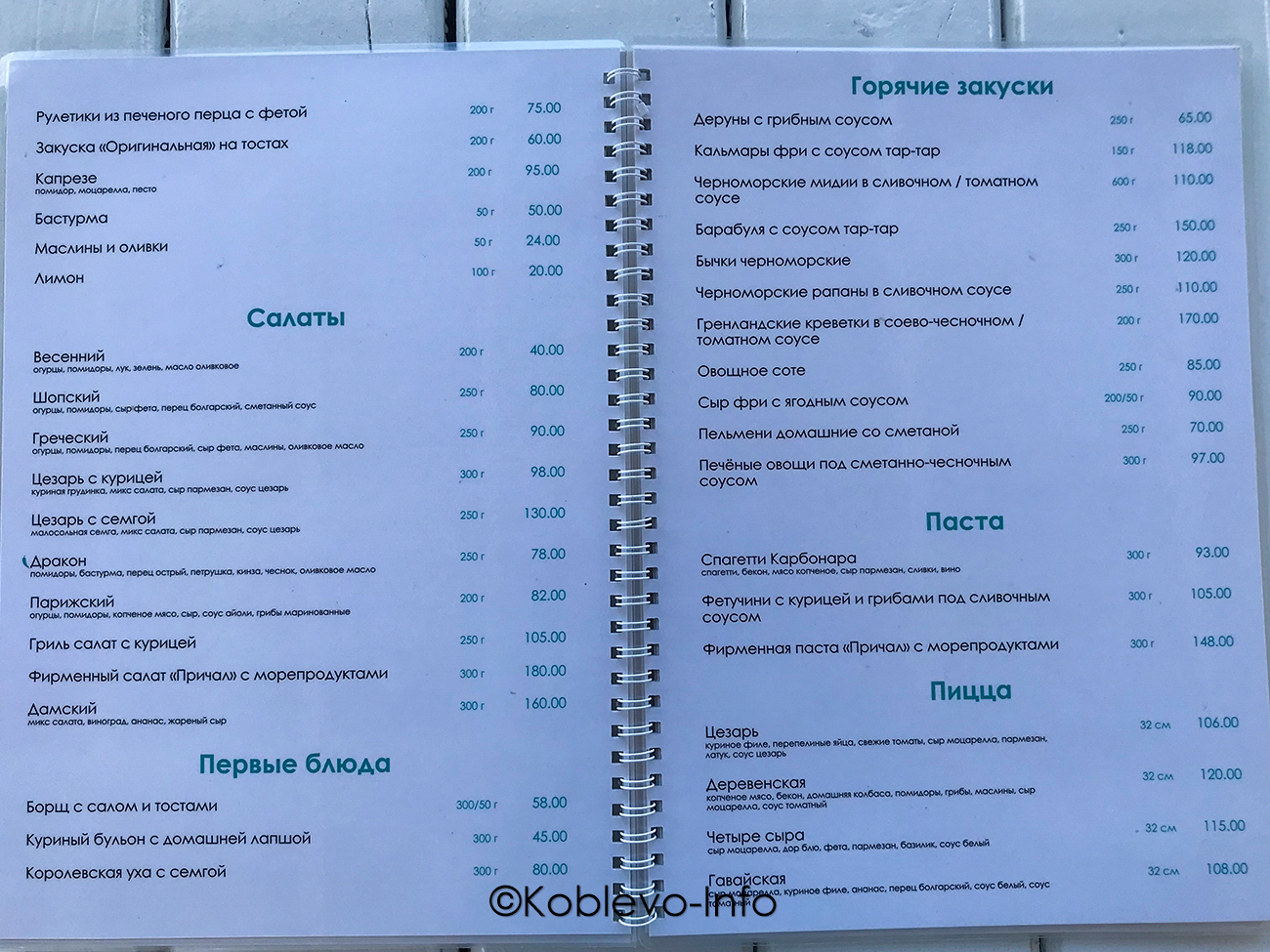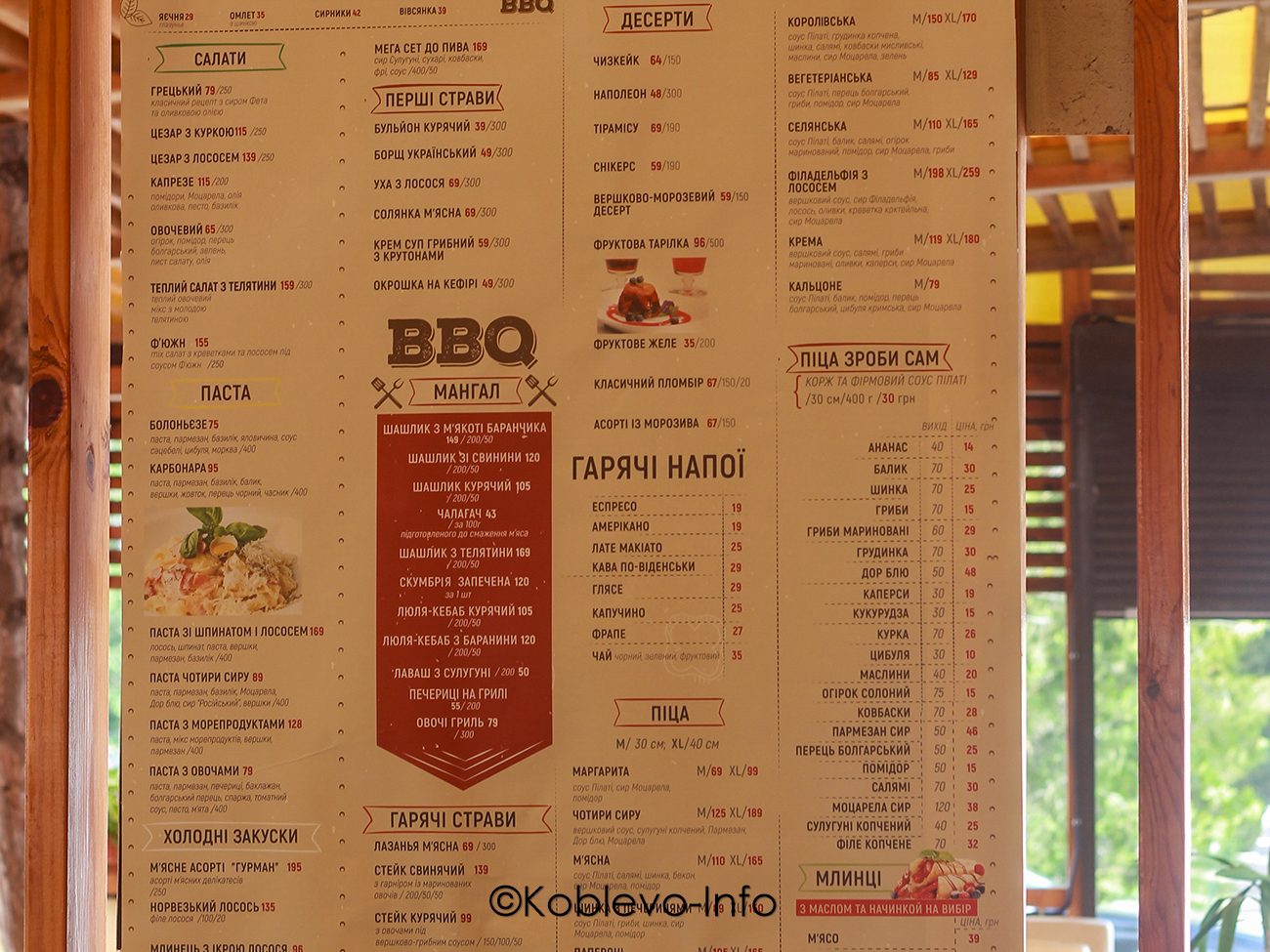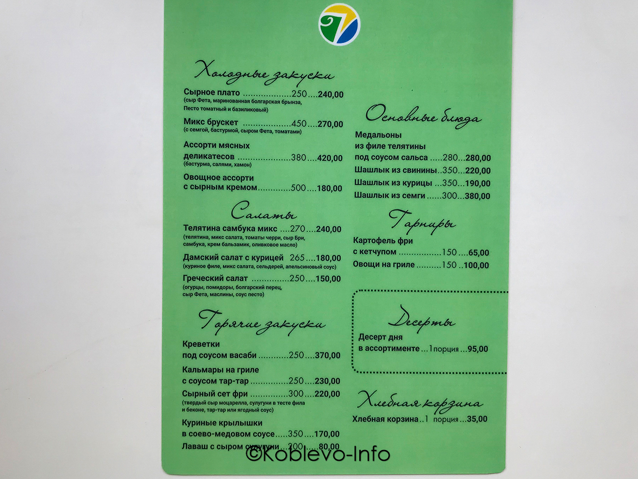 Цены 2022 в ресторанах Коблево