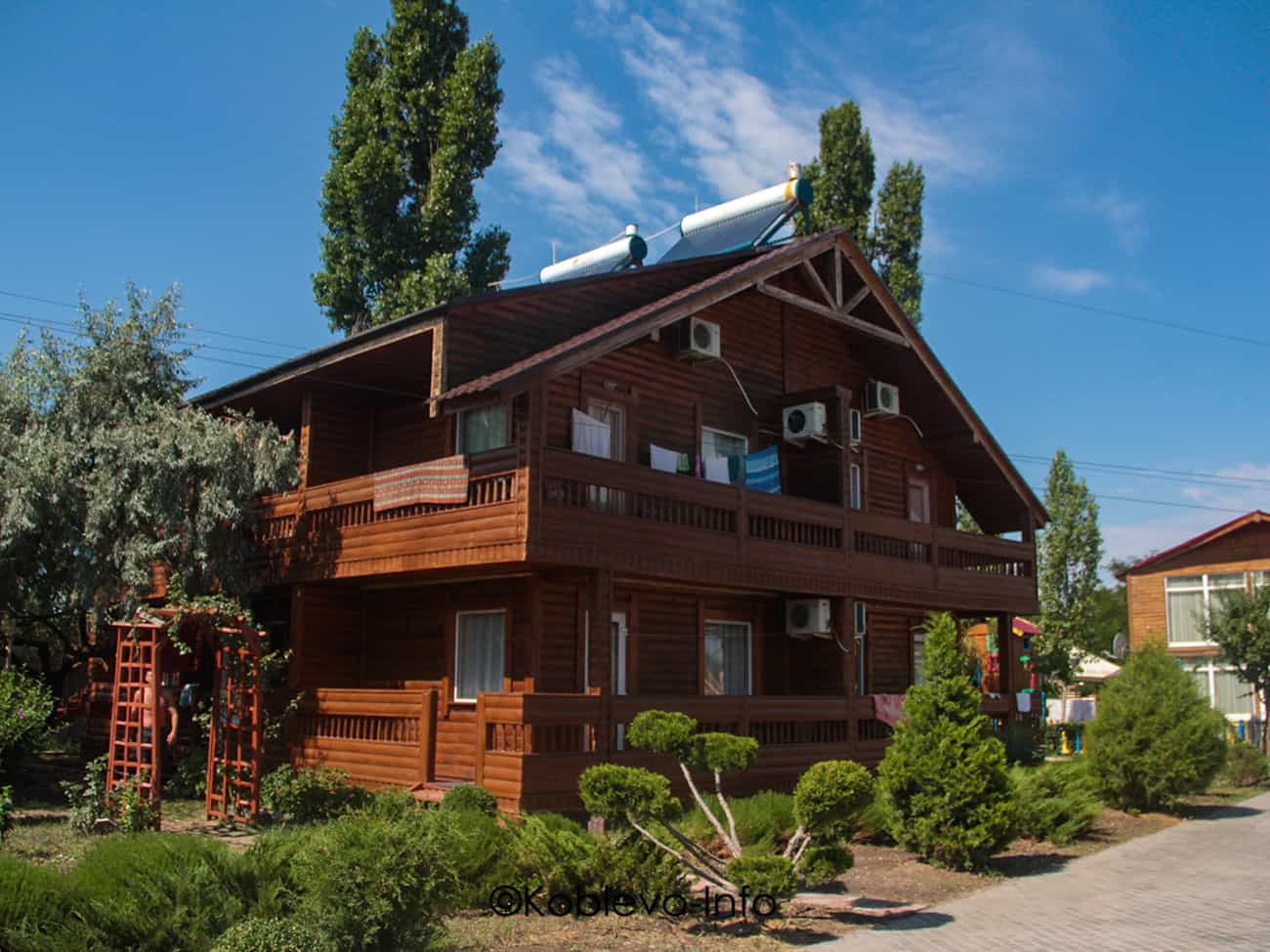 В Коблево можно арендовать не только базы и отели. Курорт богат выбором коттеджей как на берегу моря, так и в сосновом бору. Цены на аренду коттеджа в Коблево варьируются от 2000 до 7000 гривен за сутки. Стоит отметить, что практически каждый коттедж готов принять от 8 до 15 человек, что в среднем на 1 гостя выйдет от 200 до 700 гривен в сутки. Коттеджи пользуются спросом для отдыха семьей или больших компаний. Коттеджи в Коблево имеют всю необходимую бытовую технику, а также кухню с посудой. В некоторых коттеджах есть бассейн на территории. Смотреть цены на коттеджи Коблево