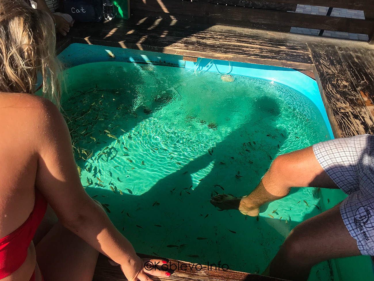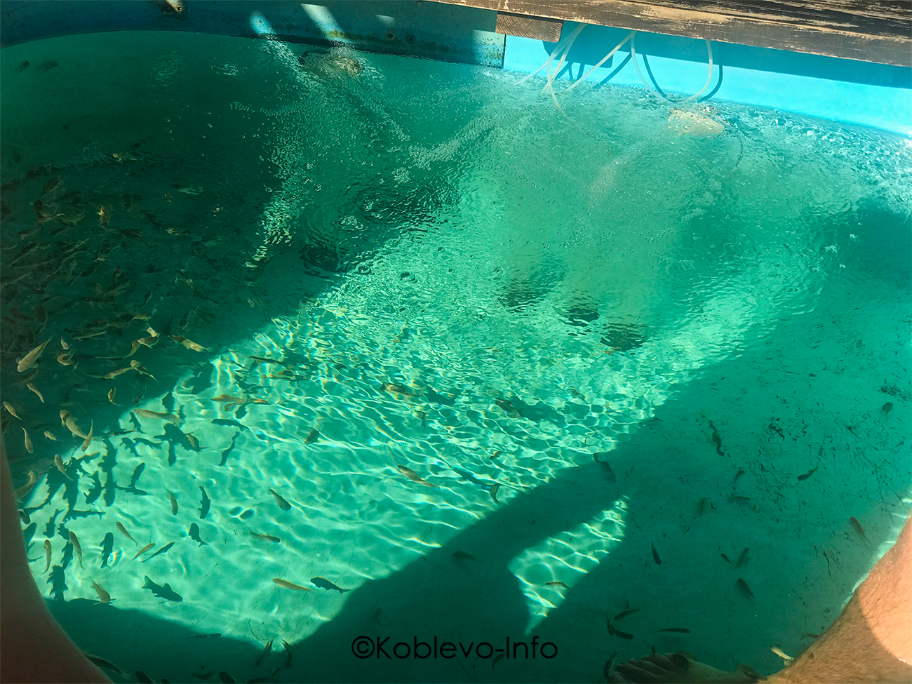 Пользу коже и безусловное удовольствие принесет пилинг рыбками Гарра Руфа. Такую услугу можно получить в аквапарке «Коблево». Стоит это от 50 гривен за 5 минут. Вы погружаете ножки в бассейн с рыбками и наслаждаетесь природным пилингом.