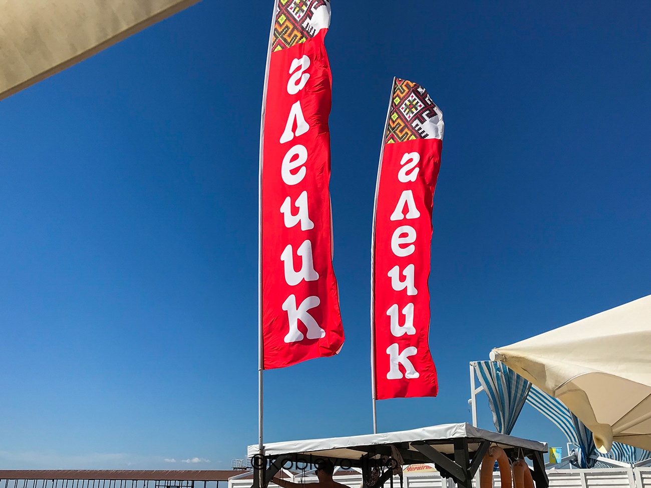 - «Марка» возле базы отдыха Ракета в Украинской части курорта.