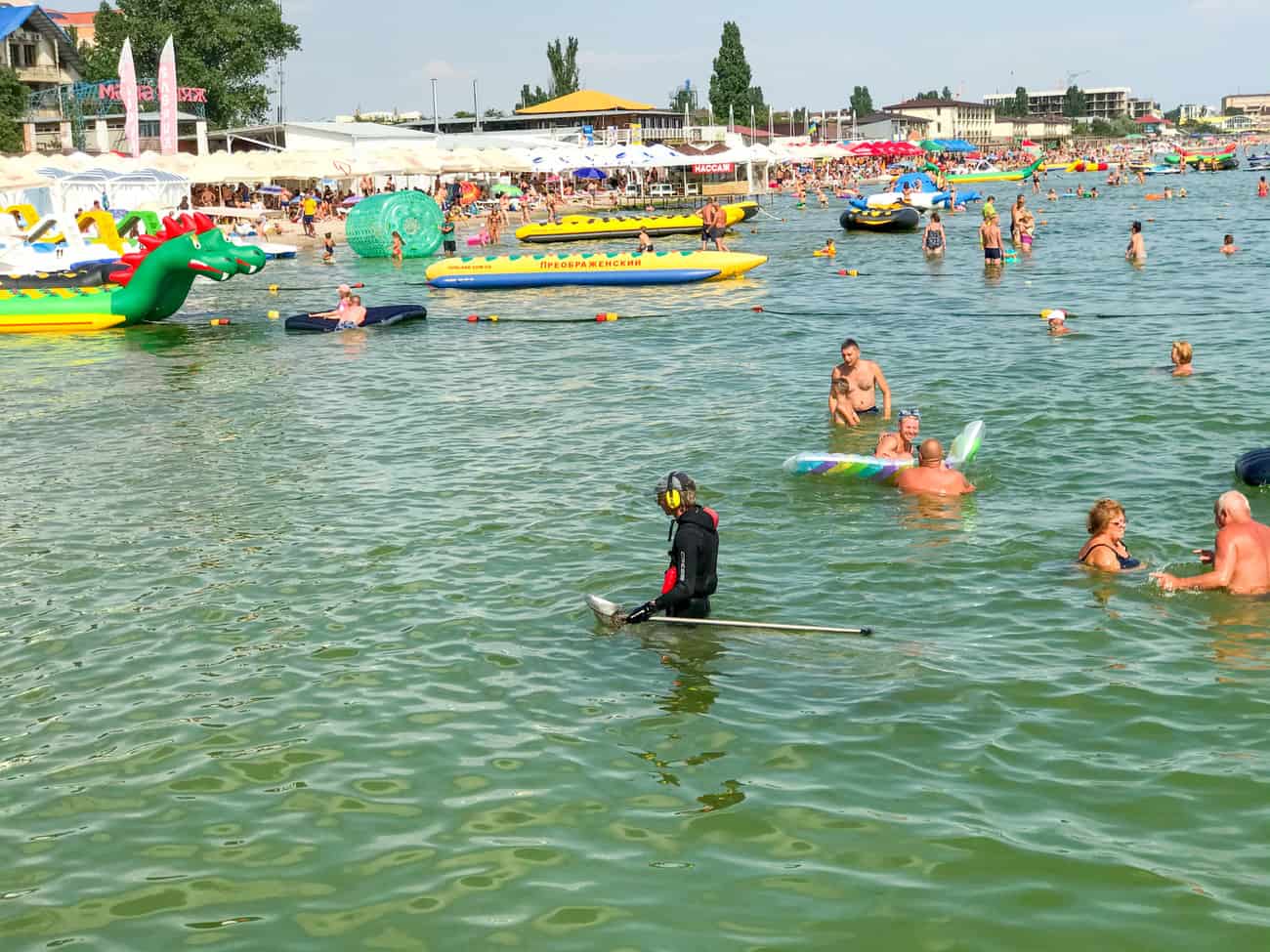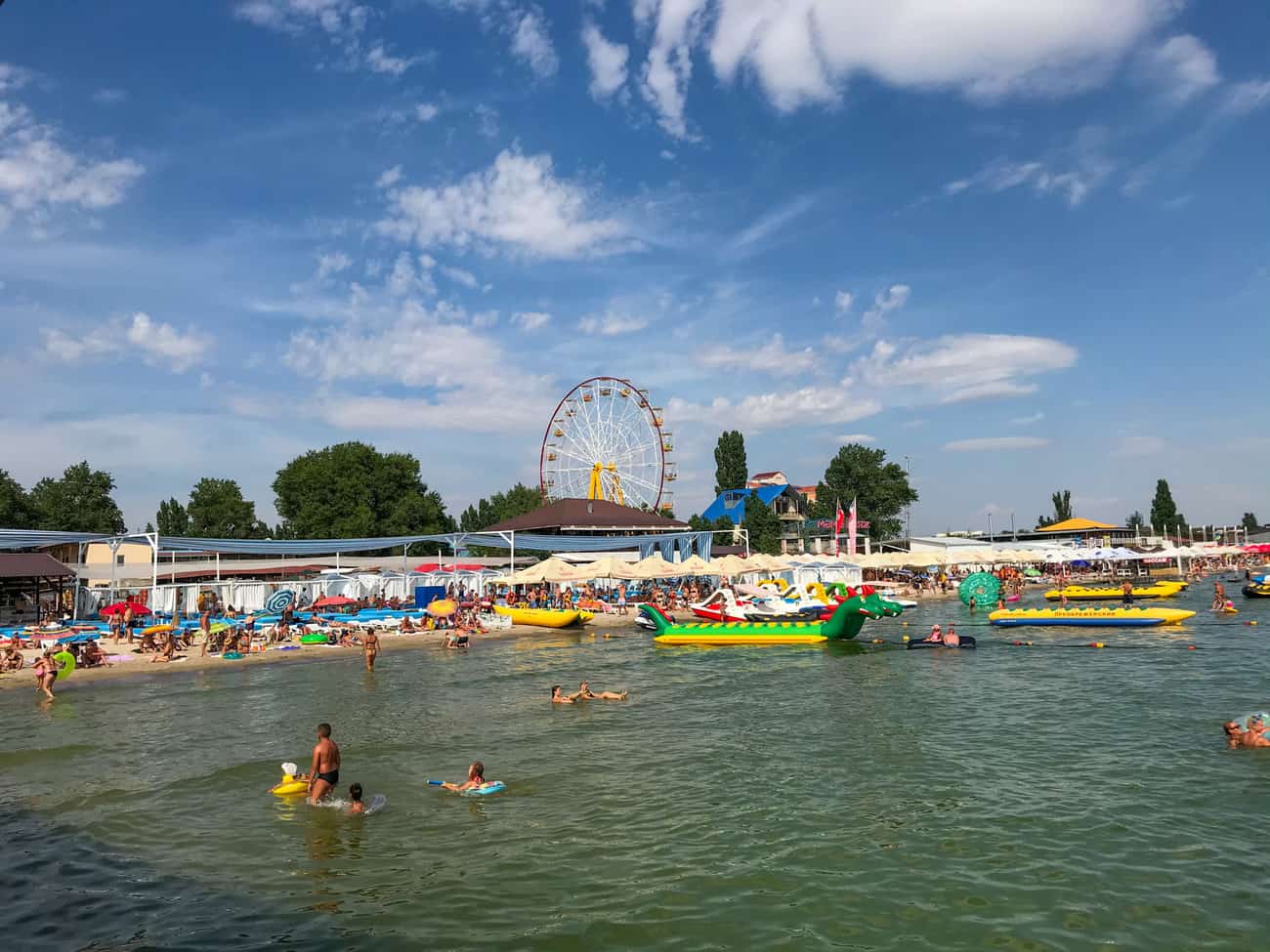 Не секрет, что здесь всегда собирается большое количество отдыхающих. Но сегодня даже мы удивились такому потоку. Сегодня туристы использовали время воскресенья по максимуму. Взрослые и дети купались в море, катались на водных аттракционах и, конечно же, нежились на солнышке. Так что советуем присоединиться ко всем курортникам в Коблево. Ведь летний сезон как раз в самом разгаре. А пока вы выбираете дату поездки к морю, мы расскажем обо всех событиях на курорте за прошедшую неделю.
