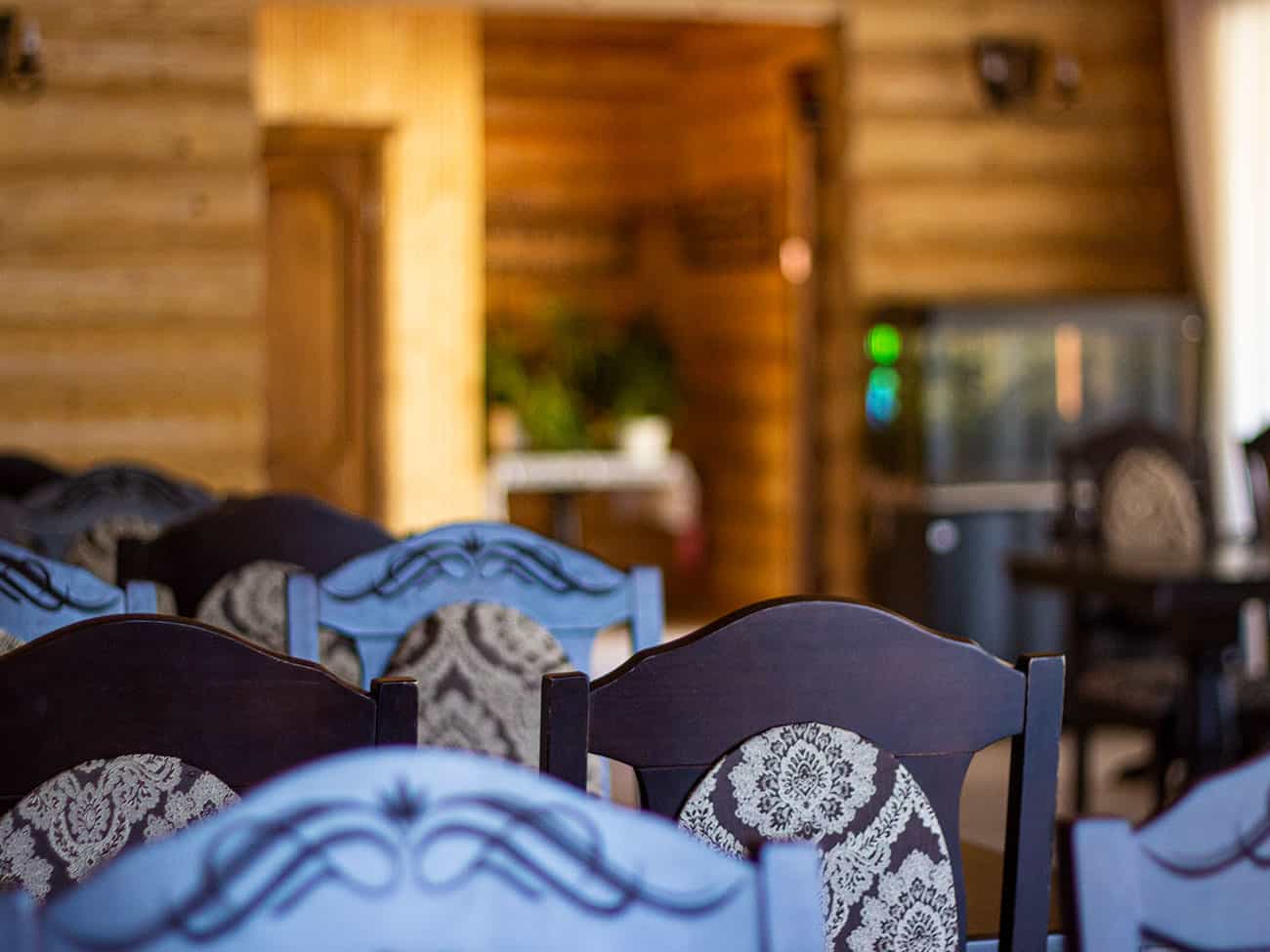 Первое, что впечатляет, это деревянные корпуса. Да не просто из дерева, а из экологически чистого сруба. На территории преобладают карпатские мотивы. На самом деле так необычно видеть на море такой дизайн отеля. Но именно это и притягивает. При входе нас встречает ресторан Синевир. Стоит отметить, что ресторан назван в честь высокогорного озера, которое находится в Карпатах. На открытой террасе ресторана стоят столы с удобными ротанговыми креслами.