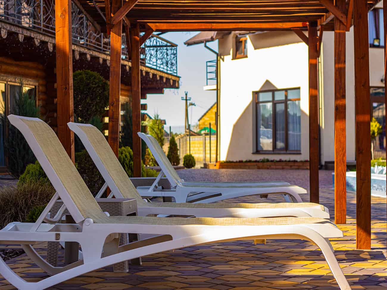 - Бассейн и комфортные шезлонги. Тут не нужно много говорить. Просто понежиться на солнышке у бассейна просто бесценно. Стоит отметить, что рядом ресторан, и можно заказать прохладительные напитки.