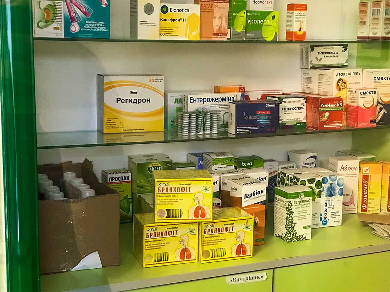 Ассортимент в аптеке возле базы отдыха Связист