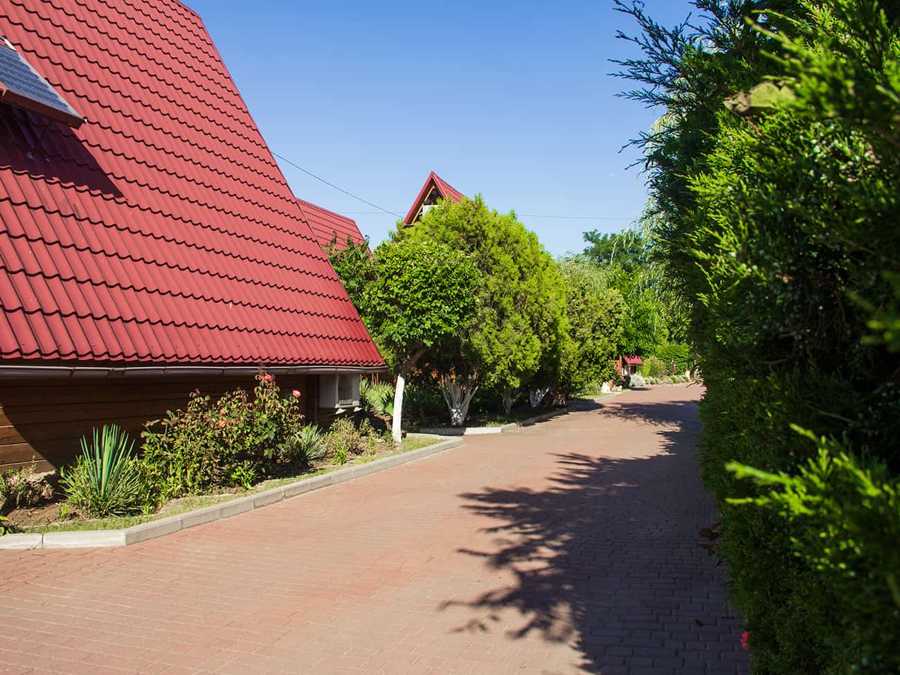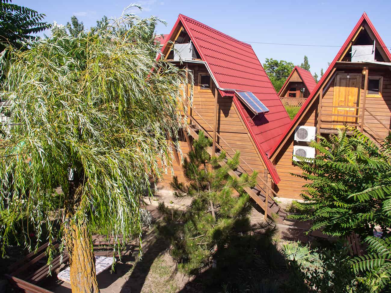 Просторная территория с зелеными насаждениями окунет вас в потрясающую атмосферу полноценного отдыха. Деревянные домики, которые построила база отдыха Эдем в Коблево, утопают в кустарниках и цветах. По периметру базы отдыха Эдем, кстати, есть много крытых беседок с мангалами. А также другими принадлежностями для барбекю. Здесь например можно провести время в кругу семьи и друзей, насладиться вкусным ужином в окружении природы.