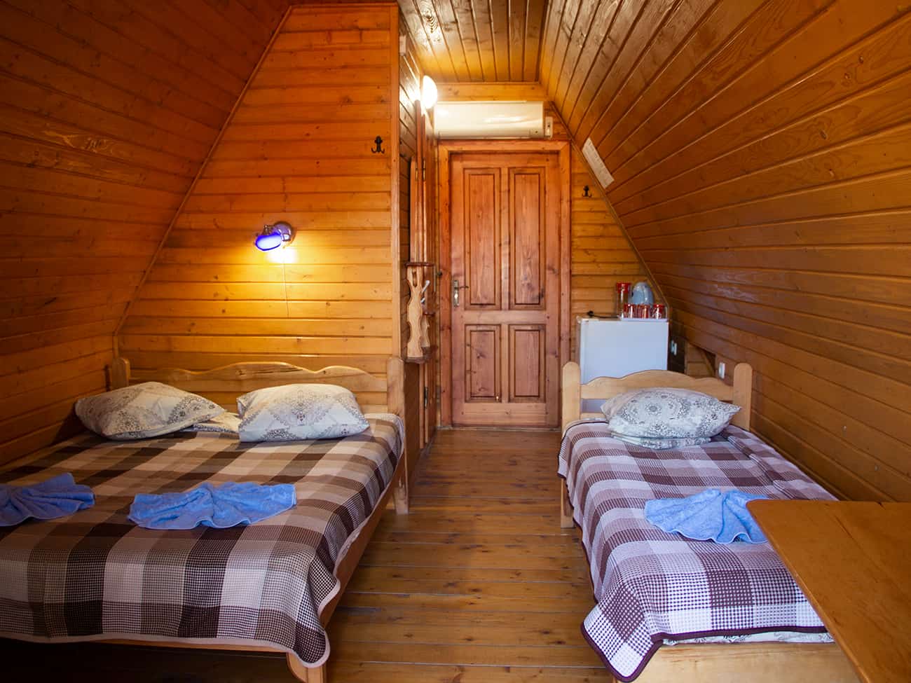 База отдыха Эдем в Коблево предлагает номера в отдельно стоящих деревянных домиках. Постояльцы могут выбрать любую комнату с различной вместительность и категориями. Например, «3-местный Полулюкс», «4-местный Люкс» или же «6-местный Люкс». Они расположились на первом и втором этаже каждого коттеджа. В трехместных комнатах есть: