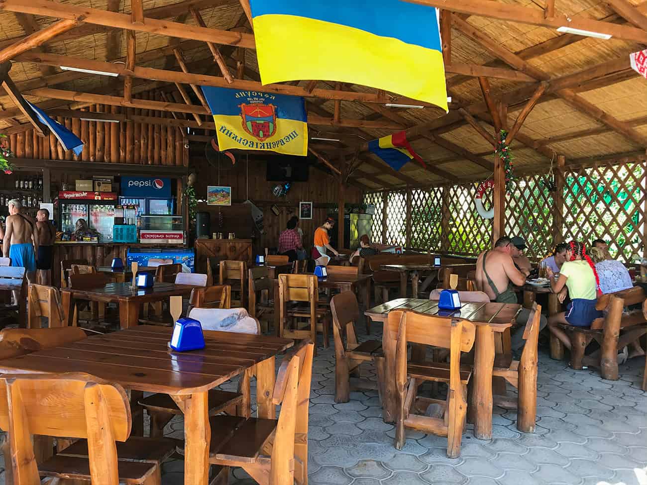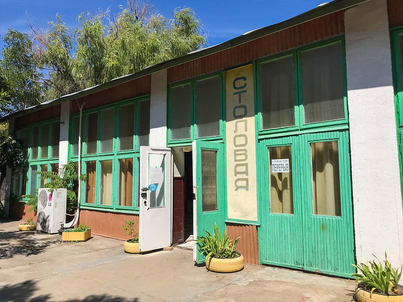 Территория базы Лазурный уютная и ухоженная. Повсюду зеленые насаждения и газоны. Вместо громоздких корпусов — комфортные деревянные и каменные домики. По всей территории, которую предлагает база отдыха Лазурный в Коблево, растут деревья и другие насаждения. Стоит отметить, что на территории базы отдыха Лазурный есть отличная столовая. Здесь, кстати, можно заказать вкусное комплексное питание, выбрав блюда из готового меню на целую неделю. У каждого гостя с машиной есть возможность припарковать ее на стоянке.