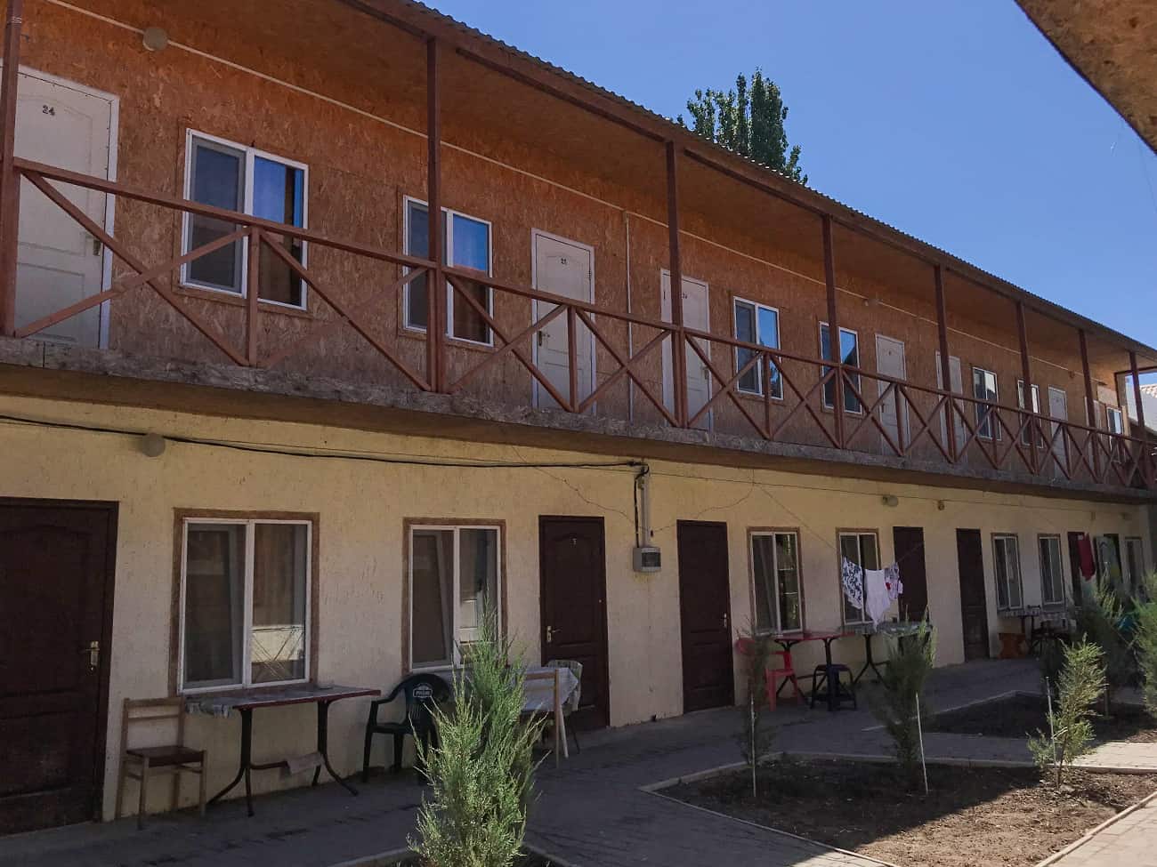 Первый из перечисленных расположен практически на берегу моря. В каждом из корпусов есть двухместные номера со всеми удобствами, а именно: