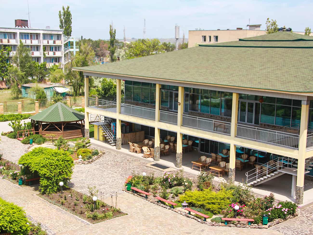 Просторная база отдыха Лотос в Коблево расположена в живописной Украинской части курорта. Адрес Лотоса в Коблево — проспект Курортный, 49 А. Стоит отметить, что база расположилась на первой линии от моря. Комплекс находится в тихом месте, удаленном от центра, где можно насладиться местными красотами и посвятить время настоящему релаксу. Одно из самых популярных мест среди туристов с детьми.