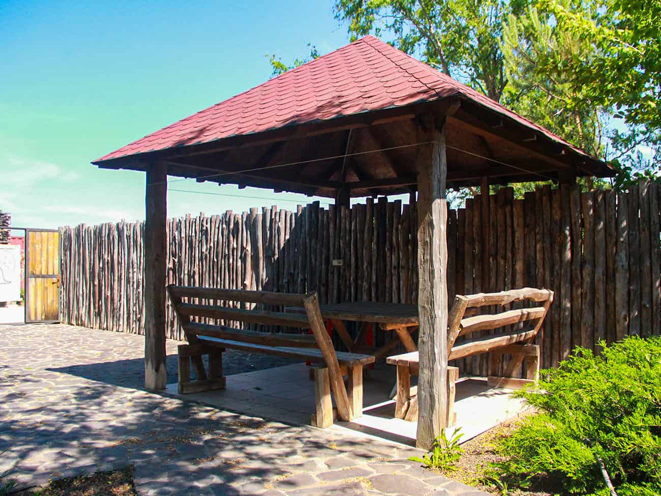 Прекрасно провести время на свежем воздухе можно в уютных деревянных беседках. Где, кстати, можно приготовить шашлык с помощью принадлежностей для барбекю. Стоит отметить, что все принадлежности для приготовления шашлыка предоставляет база отдыха. Для любителей спорта и активного времяпрепровождения на территории есть закрытая спортплощадка для игр в футбол и волейбол.