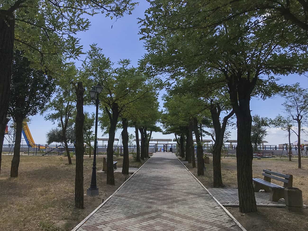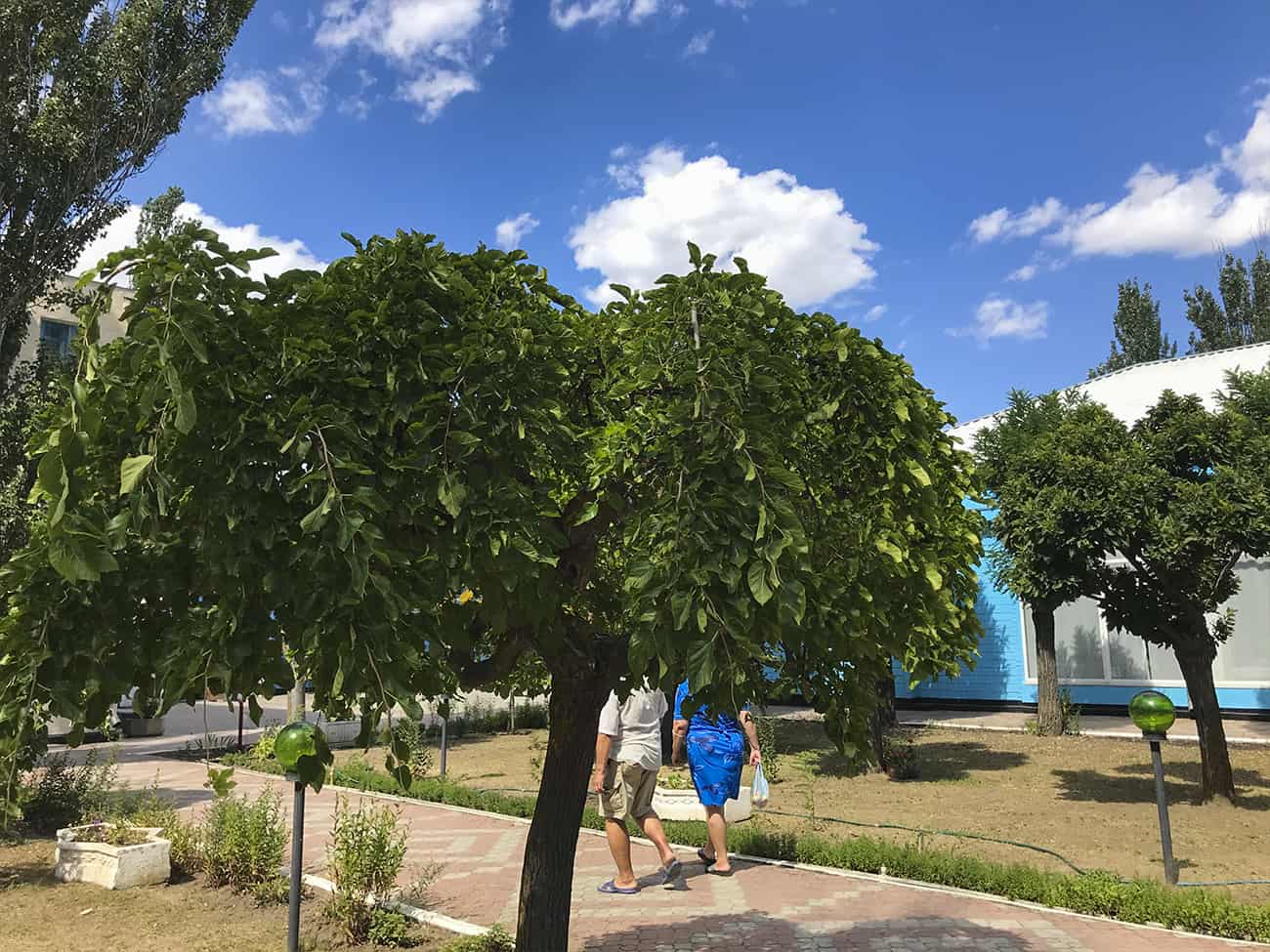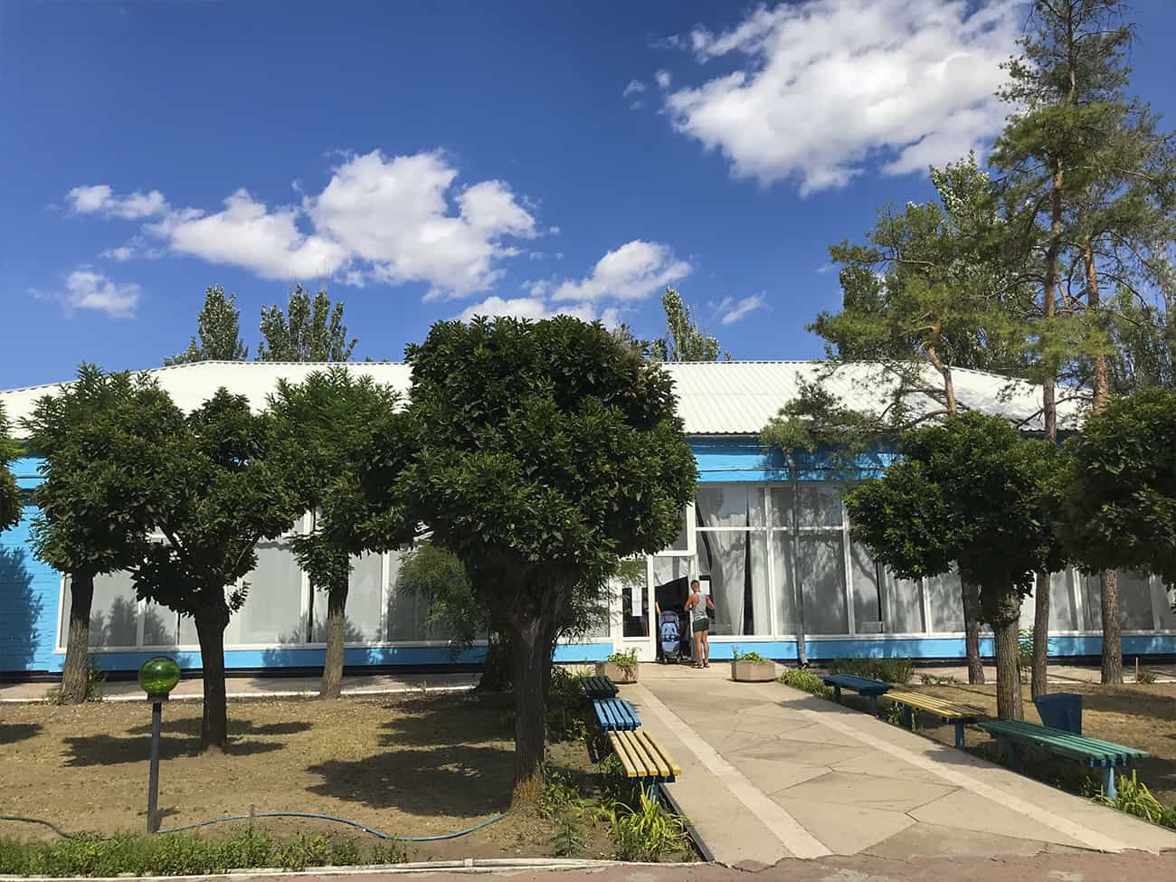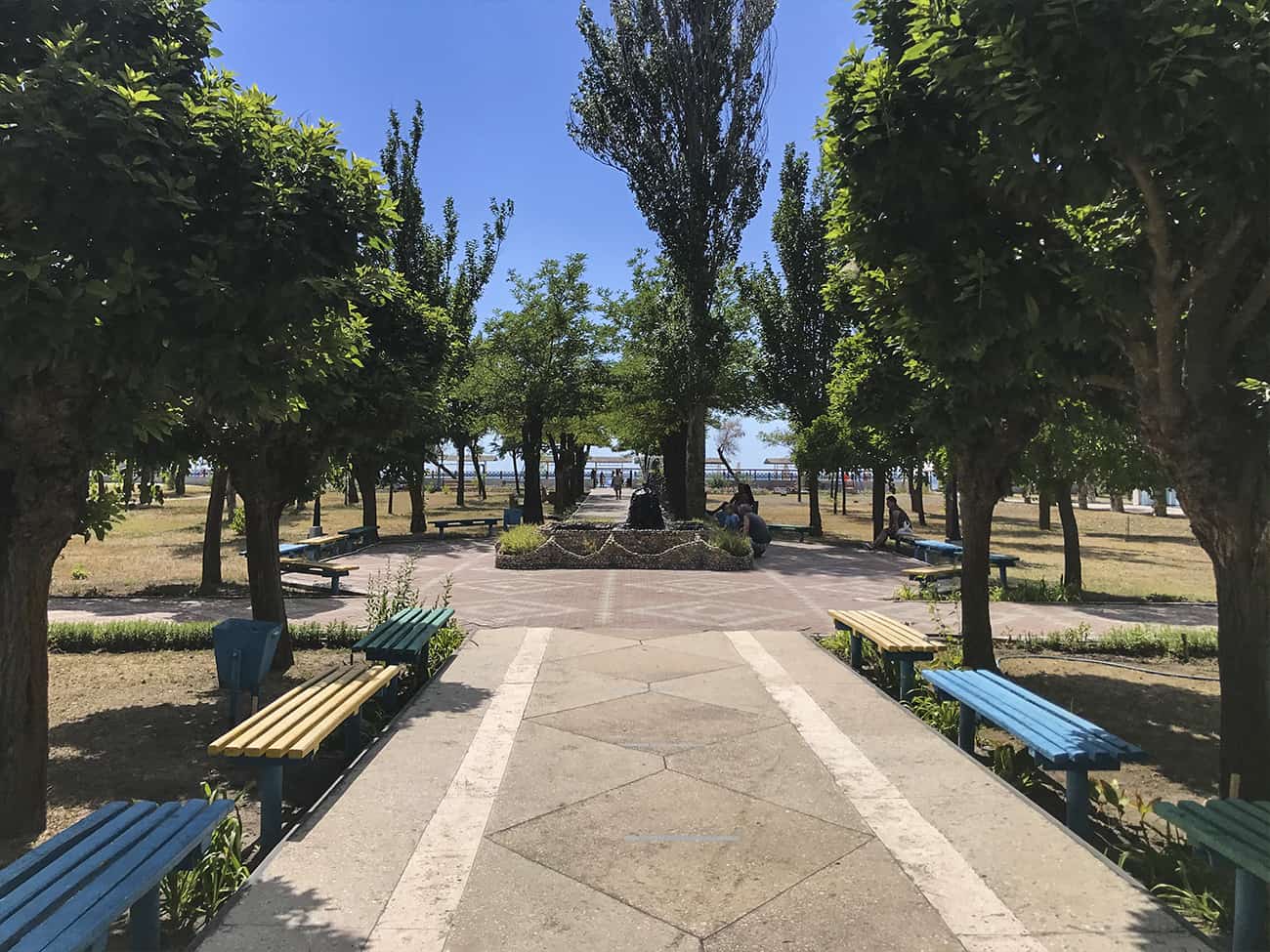 Как мы говорили ранее, база отдыха Ракета в Коблево располагает огромной территорией. Прежде всего, на них много зеленых насаждений. А также вымощенные каменной плиткой дорожки. На территории второго корпуса базы отдыха Ракета есть множество деревянных крытых беседок.