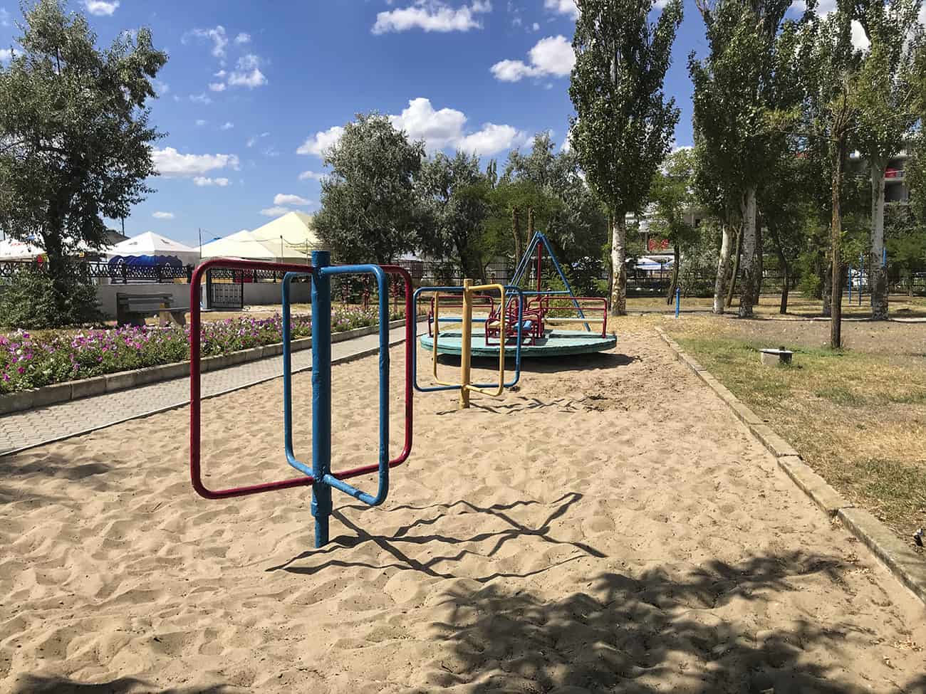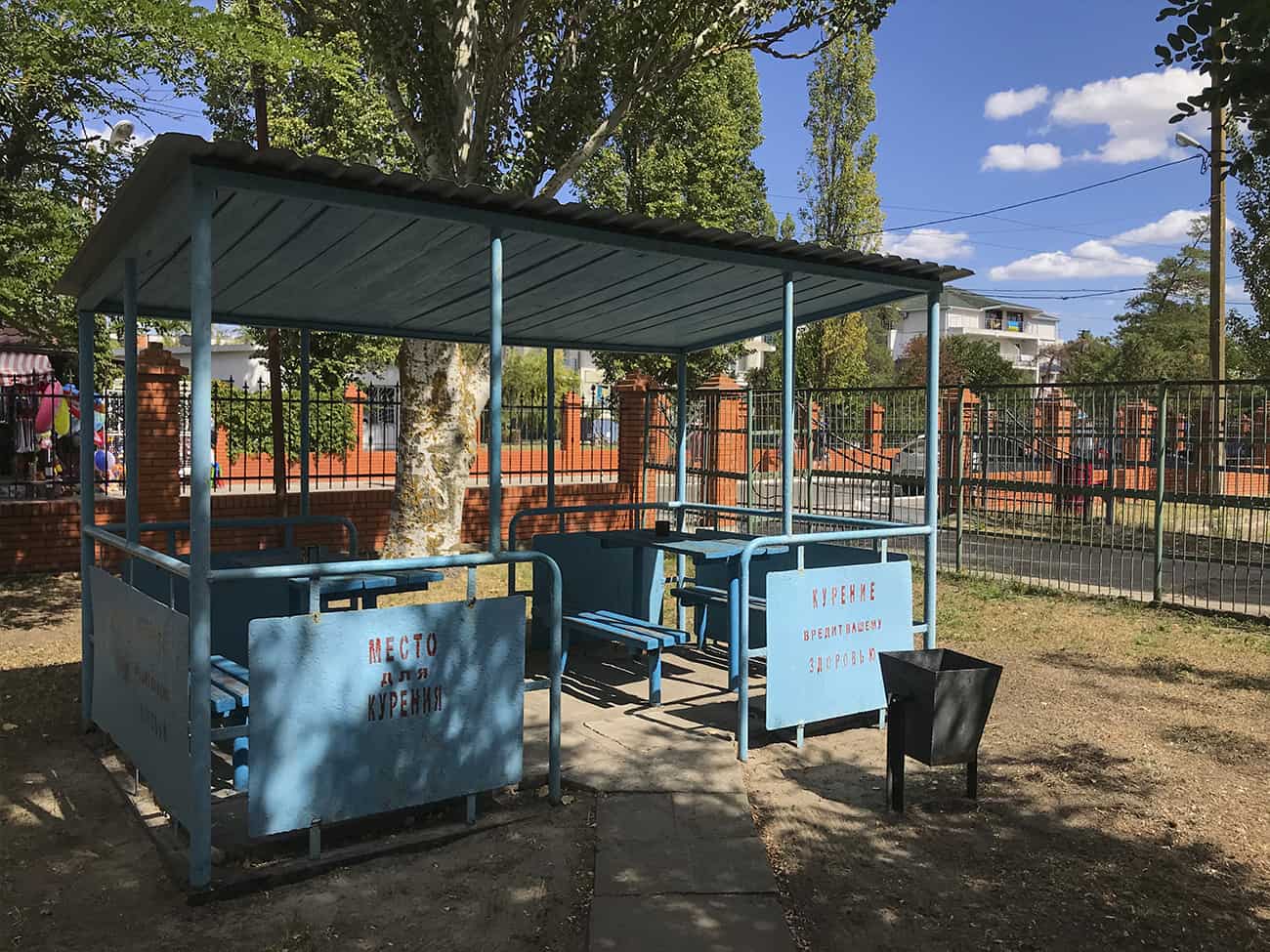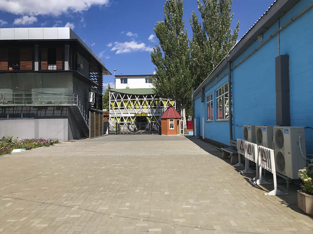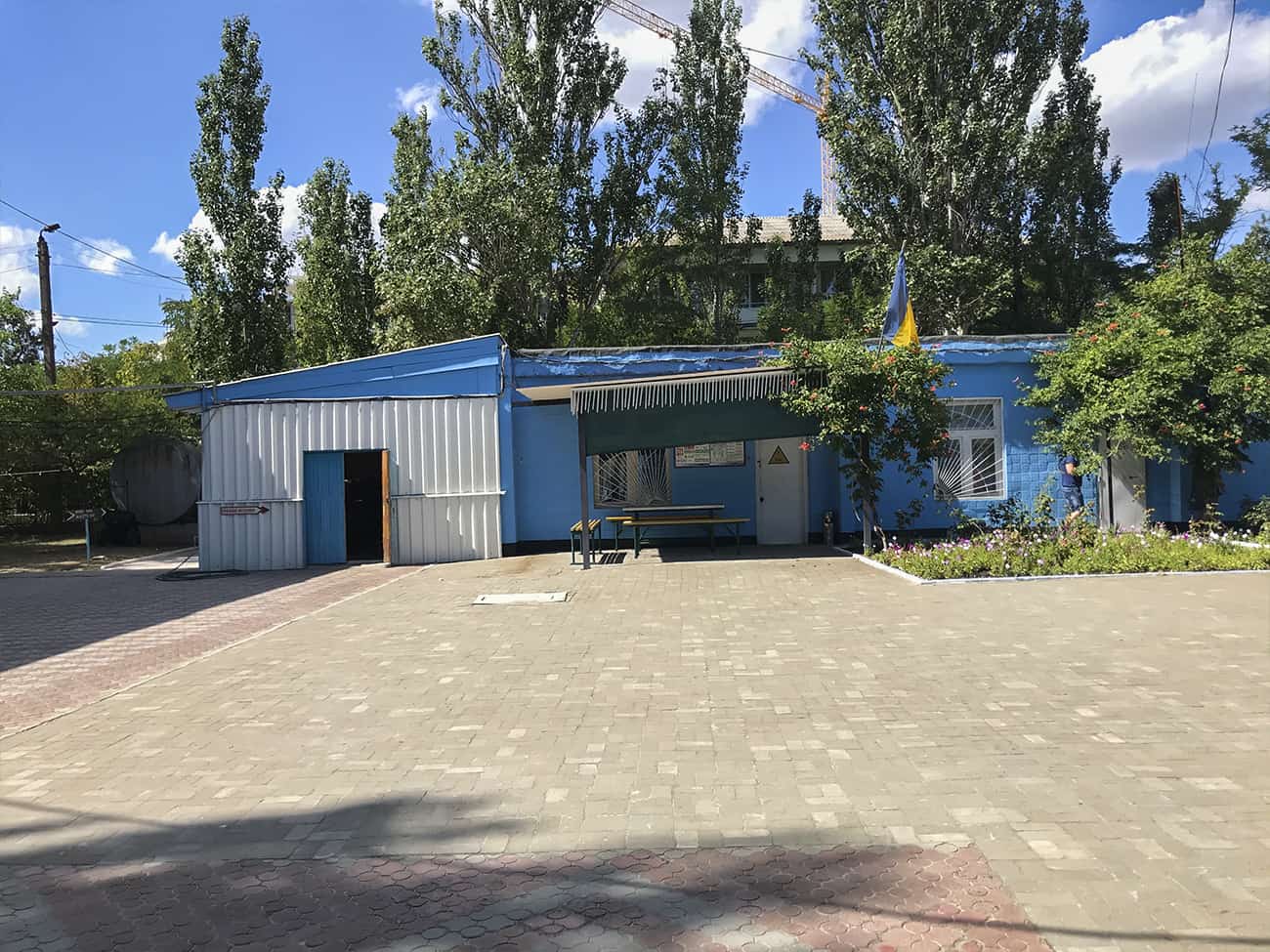 Как мы говорили ранее, база отдыха Ракета в Коблево располагает огромной территорией. Прежде всего, на них много зеленых насаждений. А также вымощенные каменной плиткой дорожки. На территории второго корпуса базы отдыха Ракета есть множество деревянных крытых беседок.