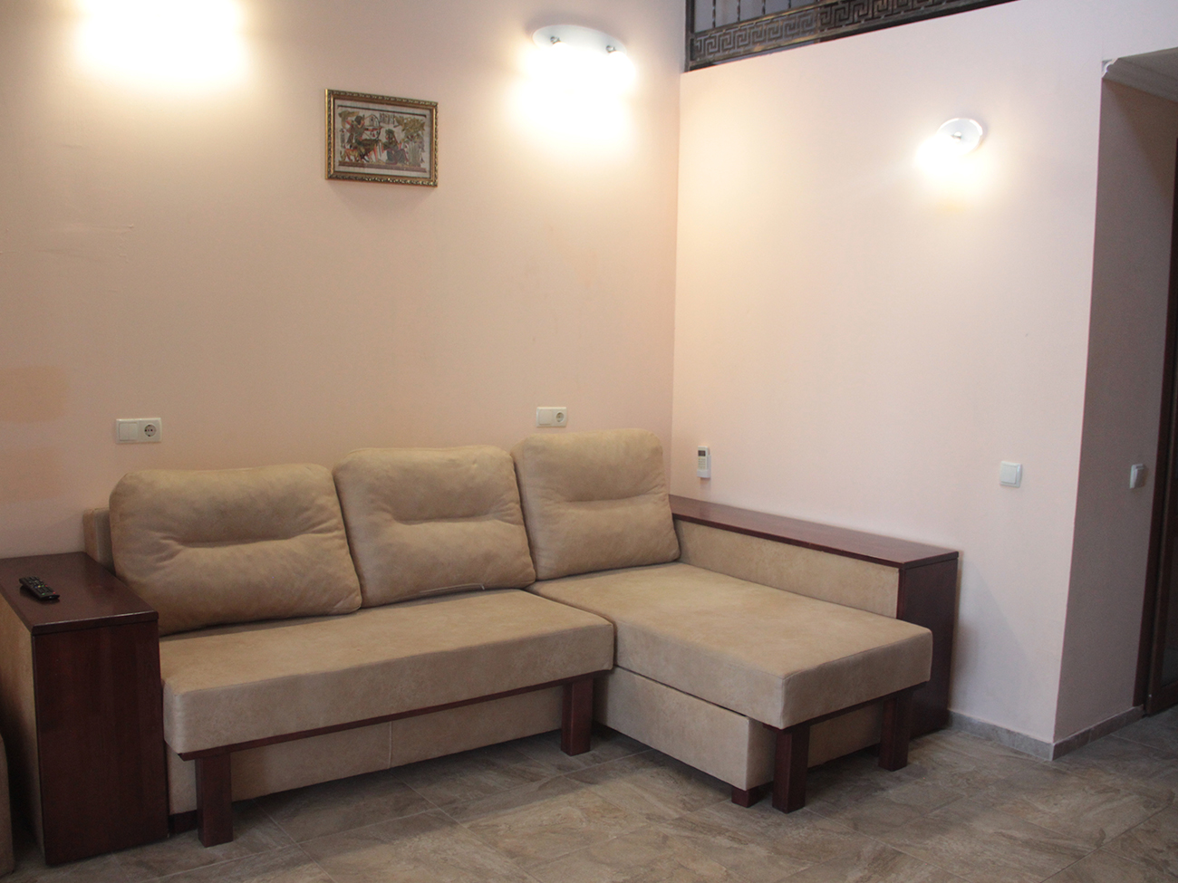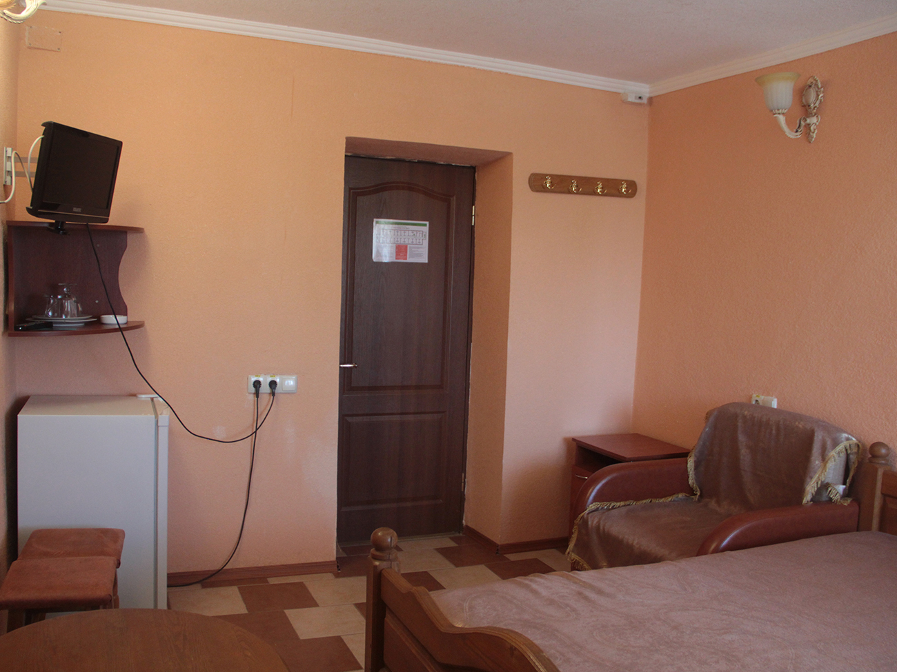 Для комфортной температуры в номерах работают кондиционеры. В каждой комнате есть телевизор и дополнительные варианты освещения. Стоит отметить, что все окна и двери сделаны из металлопластиковых конструкций. А полы — из керамической плитки.