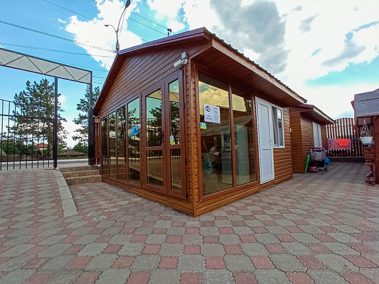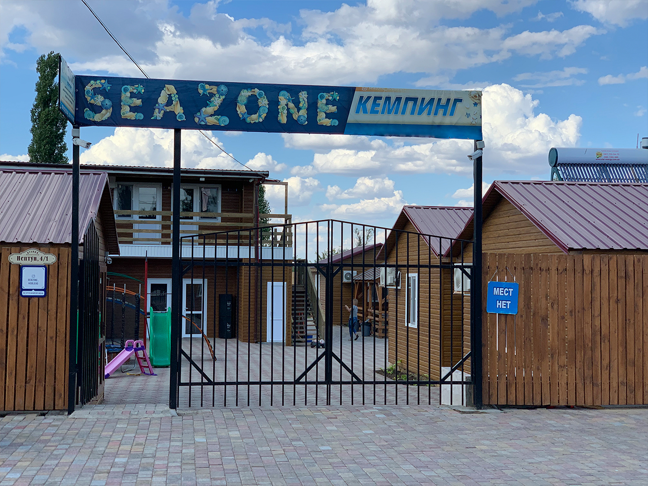 Кемпинг Seazone в Коблево располагает довольно большой и современной территорией. Здесь сразу при входе находятся домики с номерами. Также напротив них расположился двухэтажный корпус. Все строения выполнены из древесины. Сама же территория покрыта каменной плиткой, но есть некоторые участки с зелеными насаждениями.