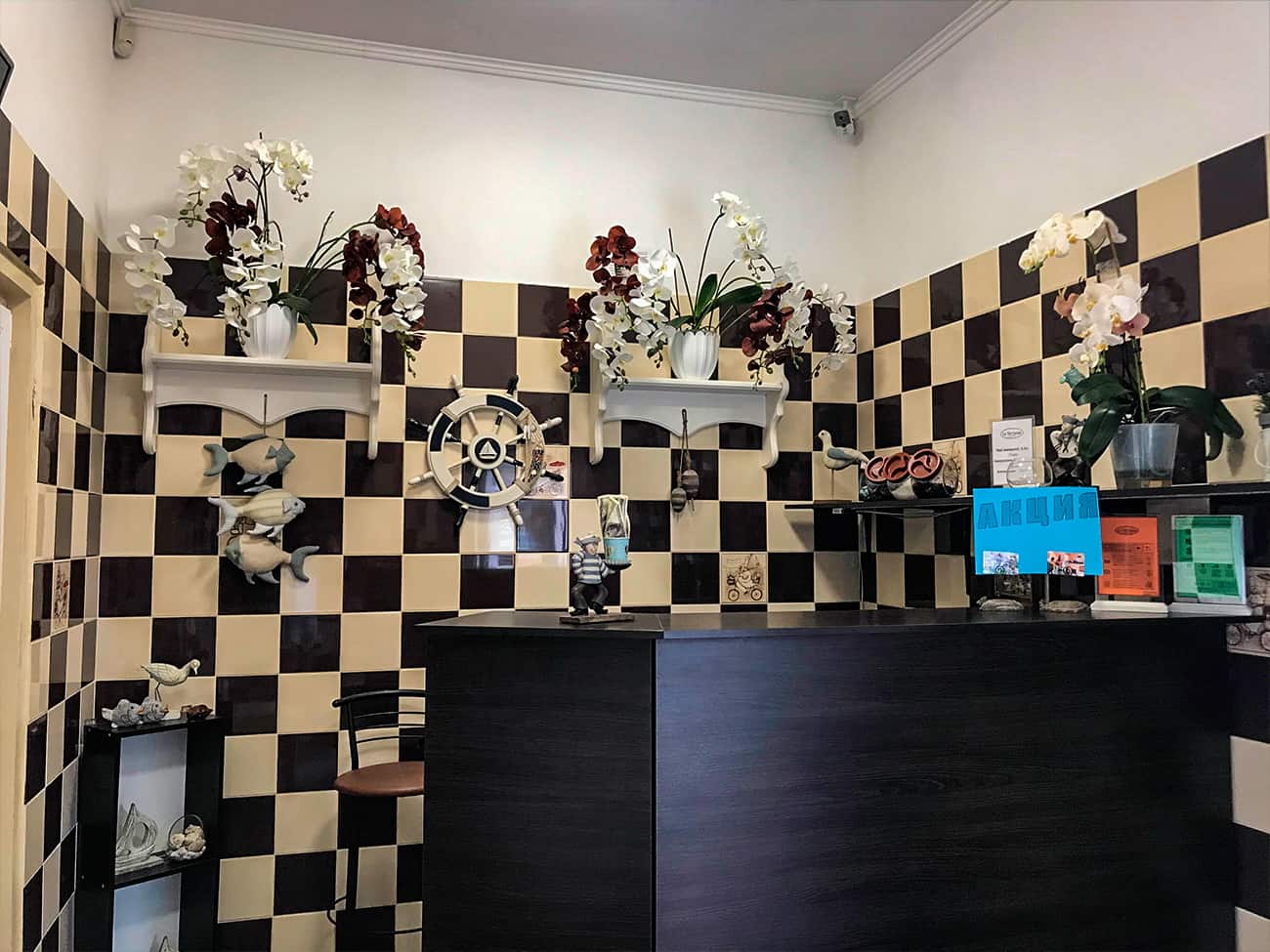 Уютный мини отель Ла Террасса в Коблево расположен в Молдавской курортной зоне по адресу ул. Кишиневская, 1/1 на первой линии от моря. Миниатюрный комплекс находится в отличном месте поселка. Стоит отметить, что это совсем рядом с центром. Кстати, здесь развита инфраструктура и широкий выбор развлечений. Расположение отеля прекрасно подходит для отдыха с детьми, так как в шаговой доступности есть аквапарк, лунапарк и дельфинарий «Немо». Продукты и другие товары можно приобрести в магазине «Марка», расположенном в 5-ти минутах ходьбы. Также недалеко от отеля Ла Террасcа есть вкусные кафе и ресторанчики.