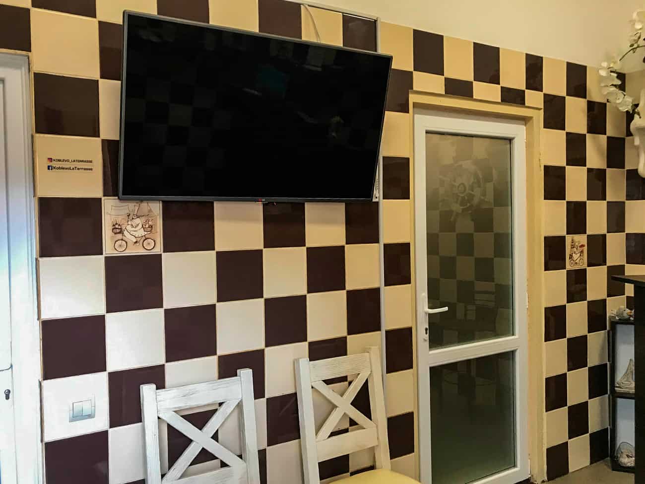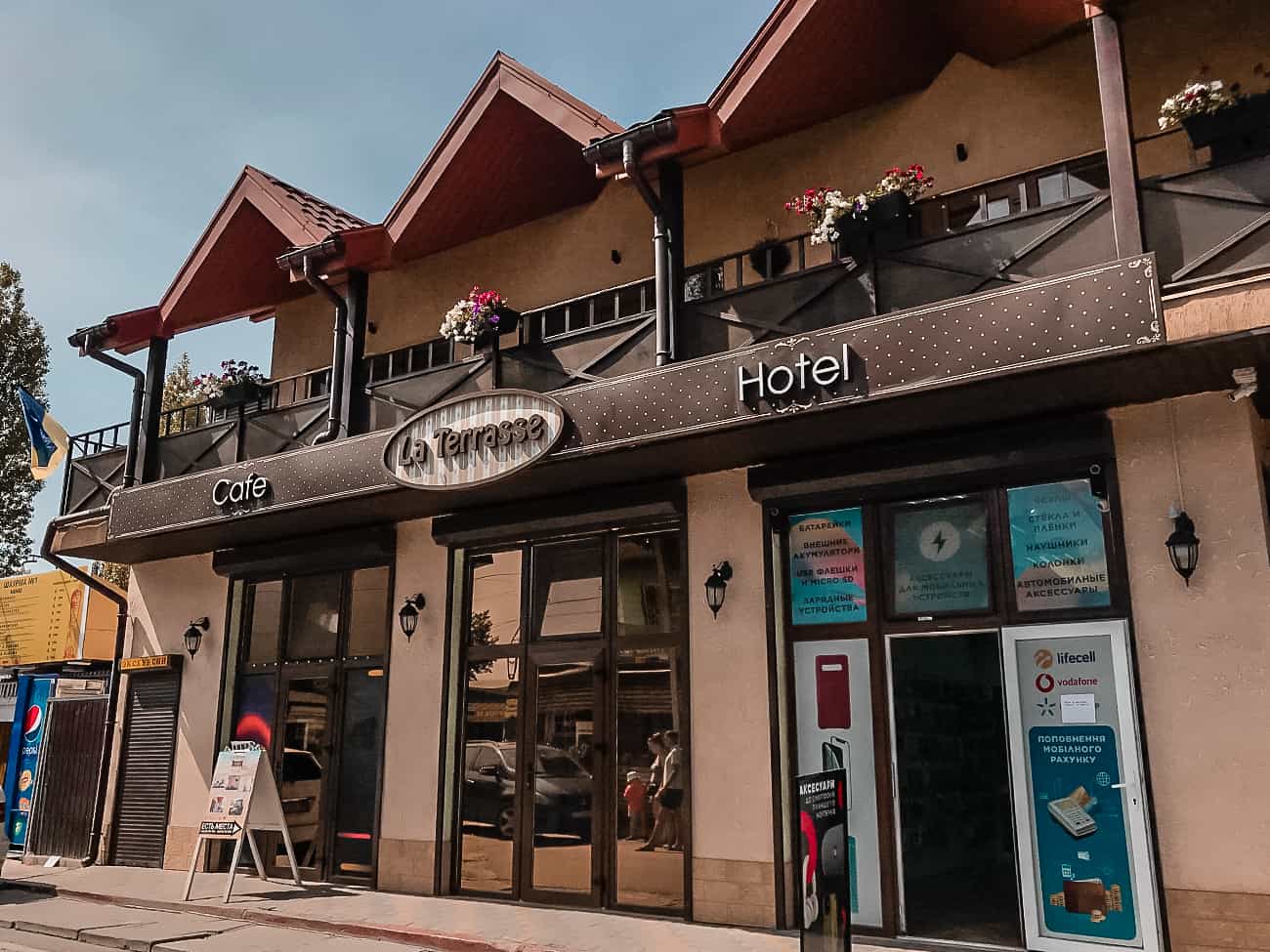 Небольшая территория, которую предлагает мини отель Ла Террасса в Коблево располагает двухэтажным зданием. Внутри — отличные номера и кафе на первом этаже. Которое, кстати, пользуется большой популярностью среди постояльцев мини отеля. Но также и среди других туристов Коблево. Здесь можно побаловать себя вкуснейшими блюдами украинской и европейской кухни. А также насладиться прохладными авторскими коктейлями и заказать кальян. По всей территории, примыкающей к отелю, работает бесплатный Wi-Fi.