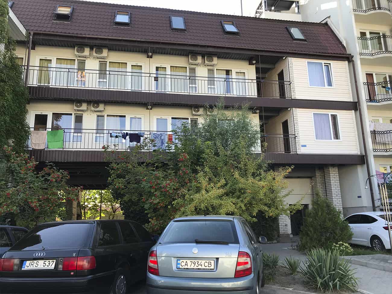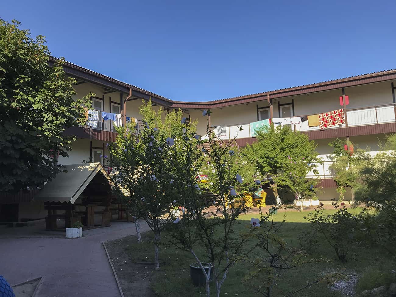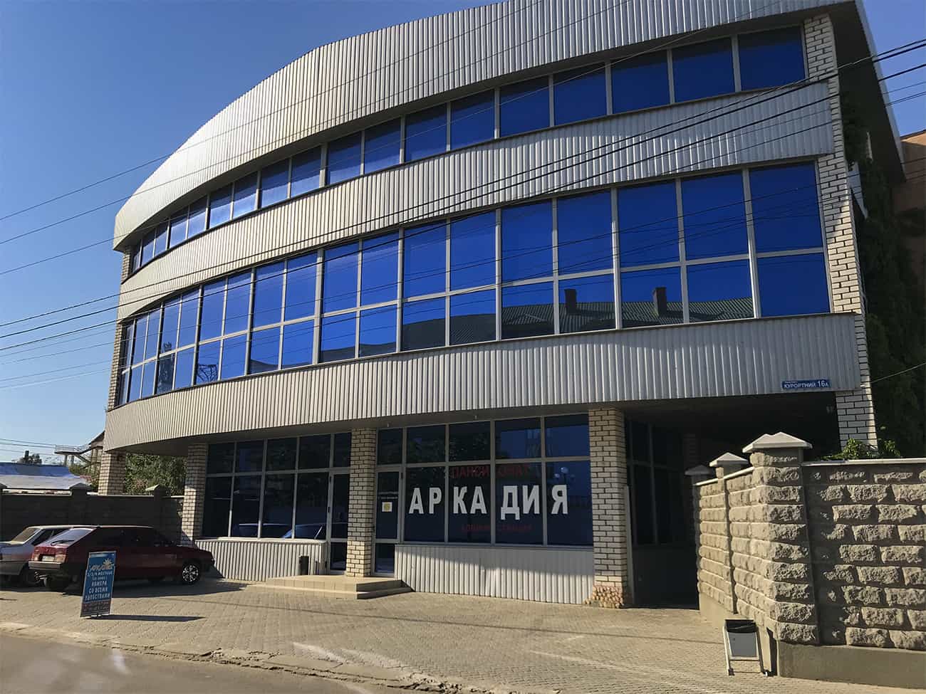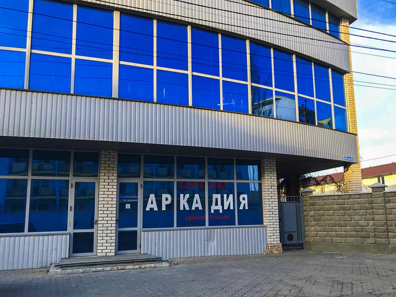 Уютный отель Аркадия в Коблево размещен в Украинской курортной зоне по адресу проспект Курортный, 16а на первой линии от моря. Большой комплекс — это излюбленное место туристов с детьми и больших компаний. Так как номера просторные, и располагают всем для комфортного размещения. Отель находится в спокойном, удаленном от центра месте. Однако добраться до сердца курорта и ключевых развлекательных объектов можно всего за 15 минут. Рядом есть кафе и супермаркет. Если срочно понадобятся медикаменты или солнцезащитный крем — рядом есть аптека.