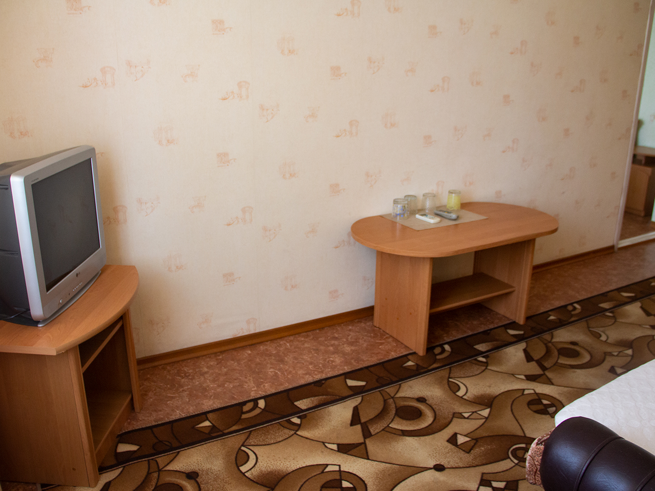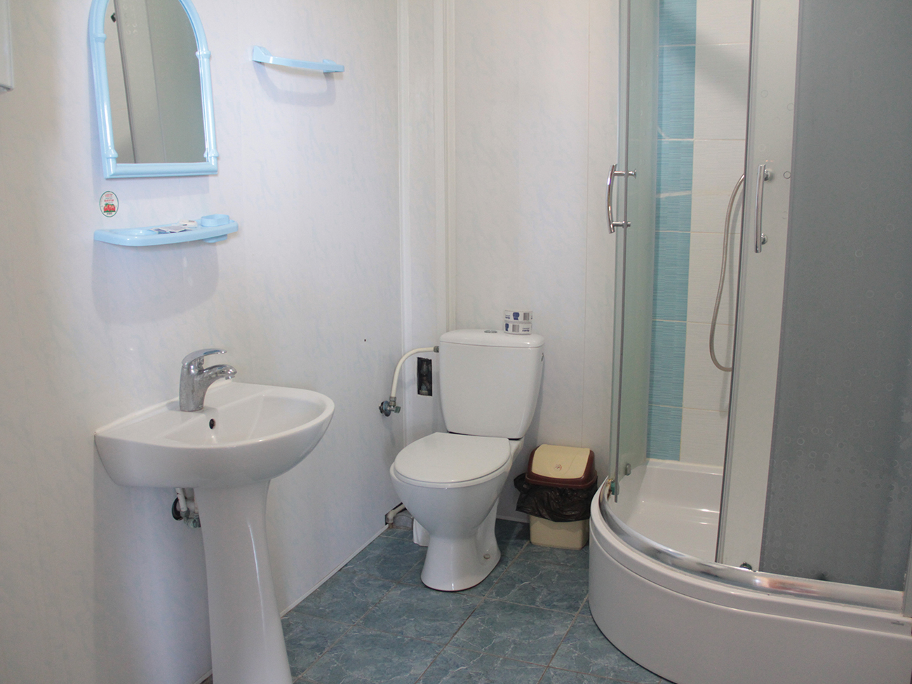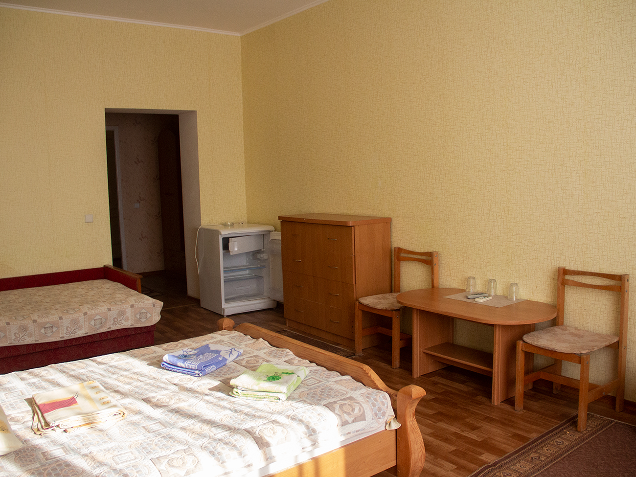 Двухкомнатные номера предусматривают большой диван. Санузел с новой сантехникой находится в каждом номере. Стоит отметить, что горячая и холодная вода подается круглосуточно.