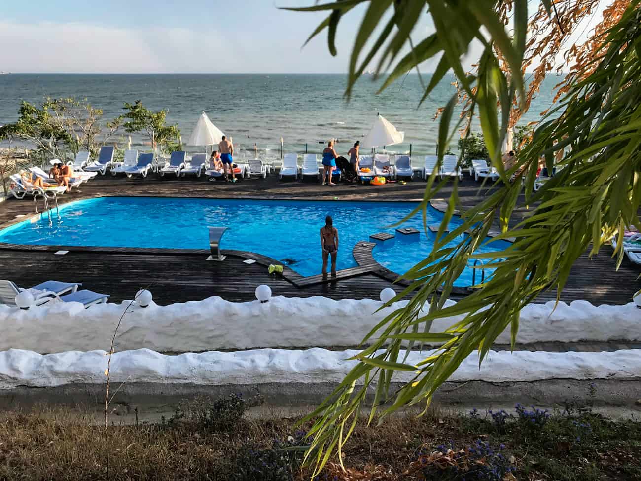 Пансионат Ивушка в Коблево, кстати, имеет потрясающую территорию у самого моря. К услугам гостей, безусловно, предоставляется комфортный бассейн, у которого есть лаунж-зона. А также шезлонги и навесы от солнца. Кроме того, позагорать можно на пляже, который примыкает к пансионату. Стоит отметить, что пляж ухоженный, и загорать там одно удовольствие. Маленькие гости пансионата, прежде всего, будут в восторге от детской площадки. Поэтому, пока взрослые отдыхают — малыши заняты делом. Более того, активные отдыхающие могут поиграть в волейбол на специально оборудованной спорт площадке.