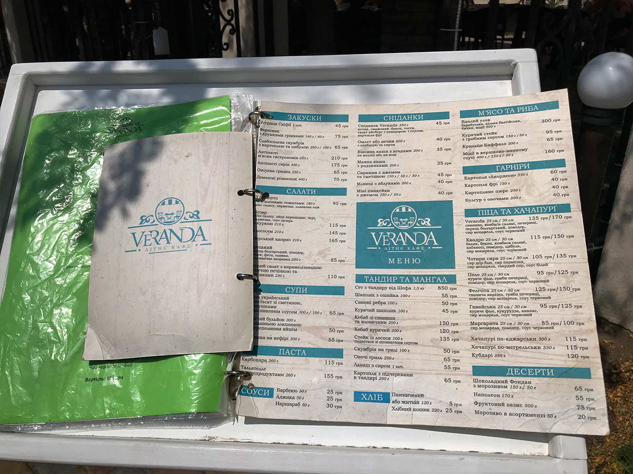 Меню в кафе Веранда в Коблево порадует гостей простыми блюдами и блюдами высокой кухни. В этом контрасте заведение и прекрасно. Здесь предлагают большой выбор пицц и даже хачапури. Но вместе с тем в заведении подают устрицы из Устричной фермы. Здесь их можно заказать за 45 грн/ед. Кроме того, в кафе Веранда предлагают: