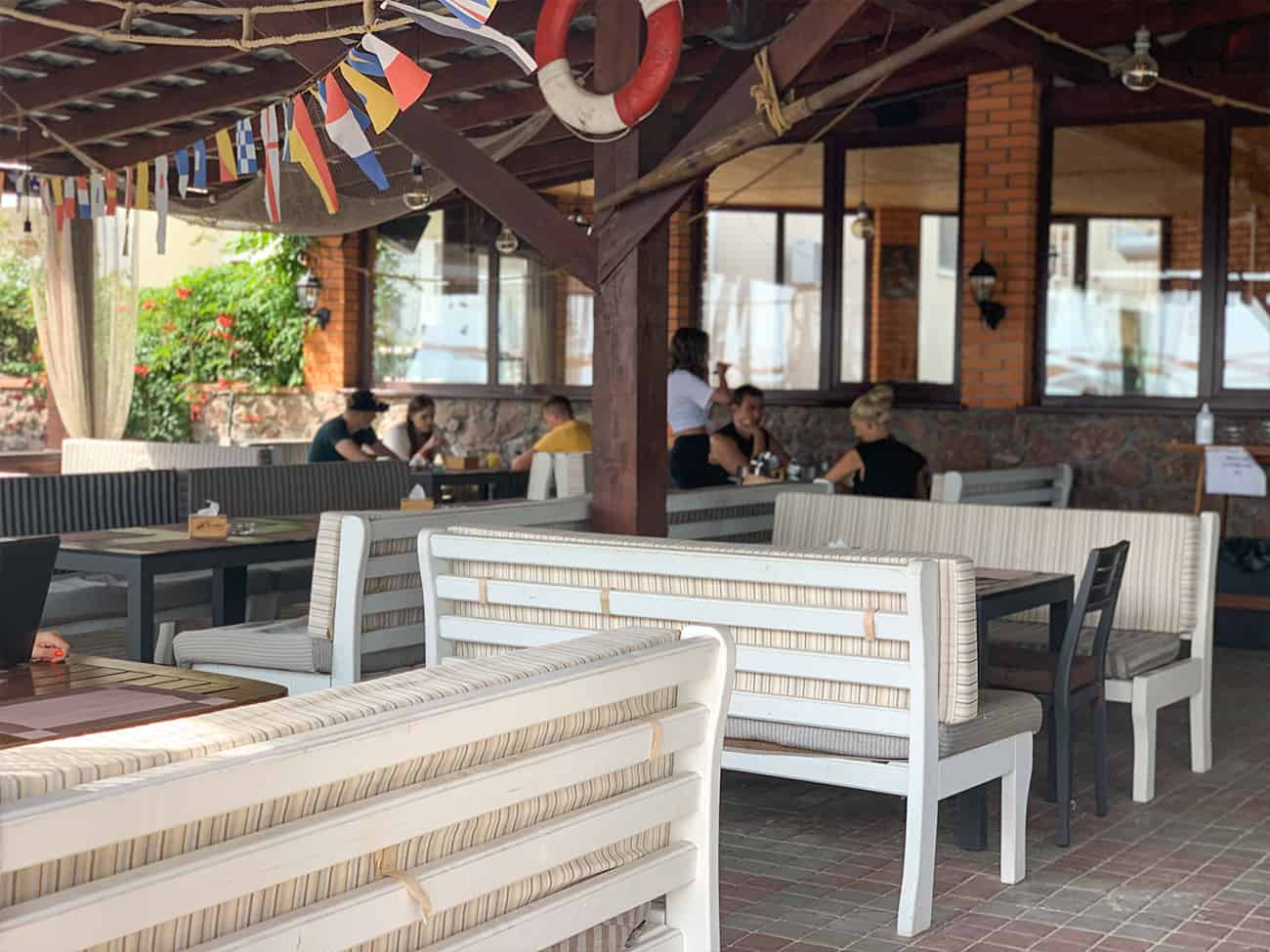 Здесь, безусловно, очень много элементов, которые полностью раскрывают концепцию заведения и с головой погружают в его атмосферу. Рядом даже стоит лодка в качестве декорации. Гости могут расположиться на удобных мягких диванчиках и стульях. Есть несколько видов столов. Все зависит от того, какой компанией вы решите посетить ресторан Маяк Рыба и Гриль.