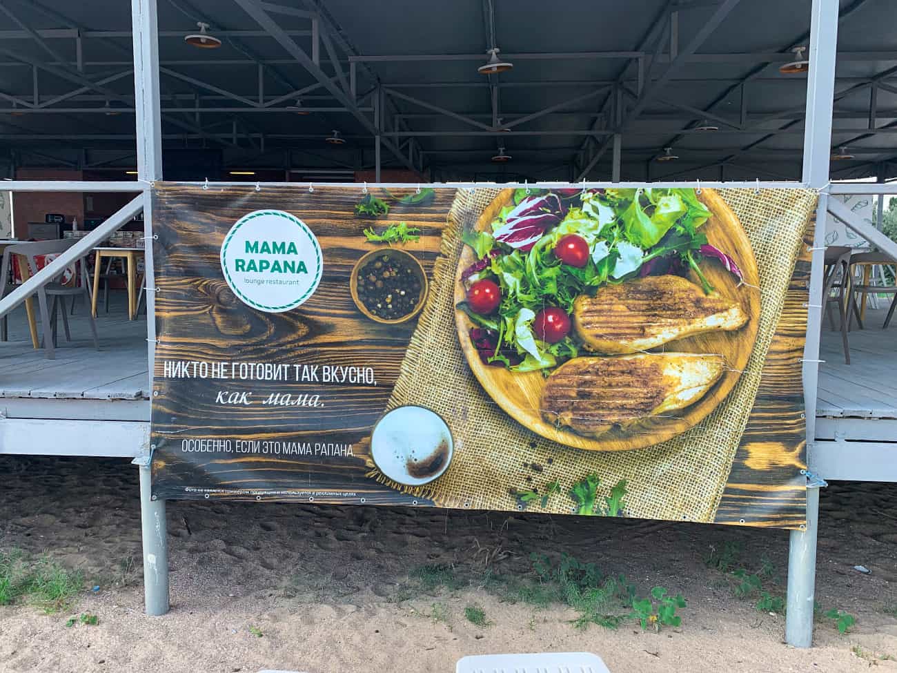 Ресторан Мама Рапана в Коблево находится на территории одного из самых популярных комплексов курорта. Речь идет о парк-отеле Кипарис. Он расположился на первой береговой линии, а сам ресторан находится в непосредственной близости к морю. Кроме того, Мама Рапана не огорожен от тех, кто не проживает в отеле. Поэтому зайти в ресторан может абсолютно любой отдыхающий в Коблево, вне зависимости от того, является ли он постояльцем отеля.