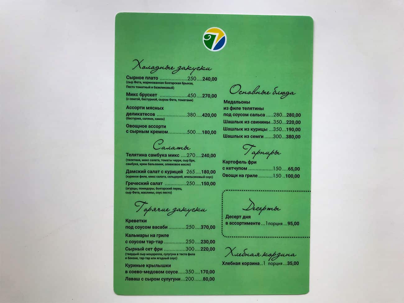 Меню ресторана не отличается от тех, которые обычно предлагают в хороших заведениях. В основном это европейская кухня. Ресторан Небо в Коблево предлагает:
