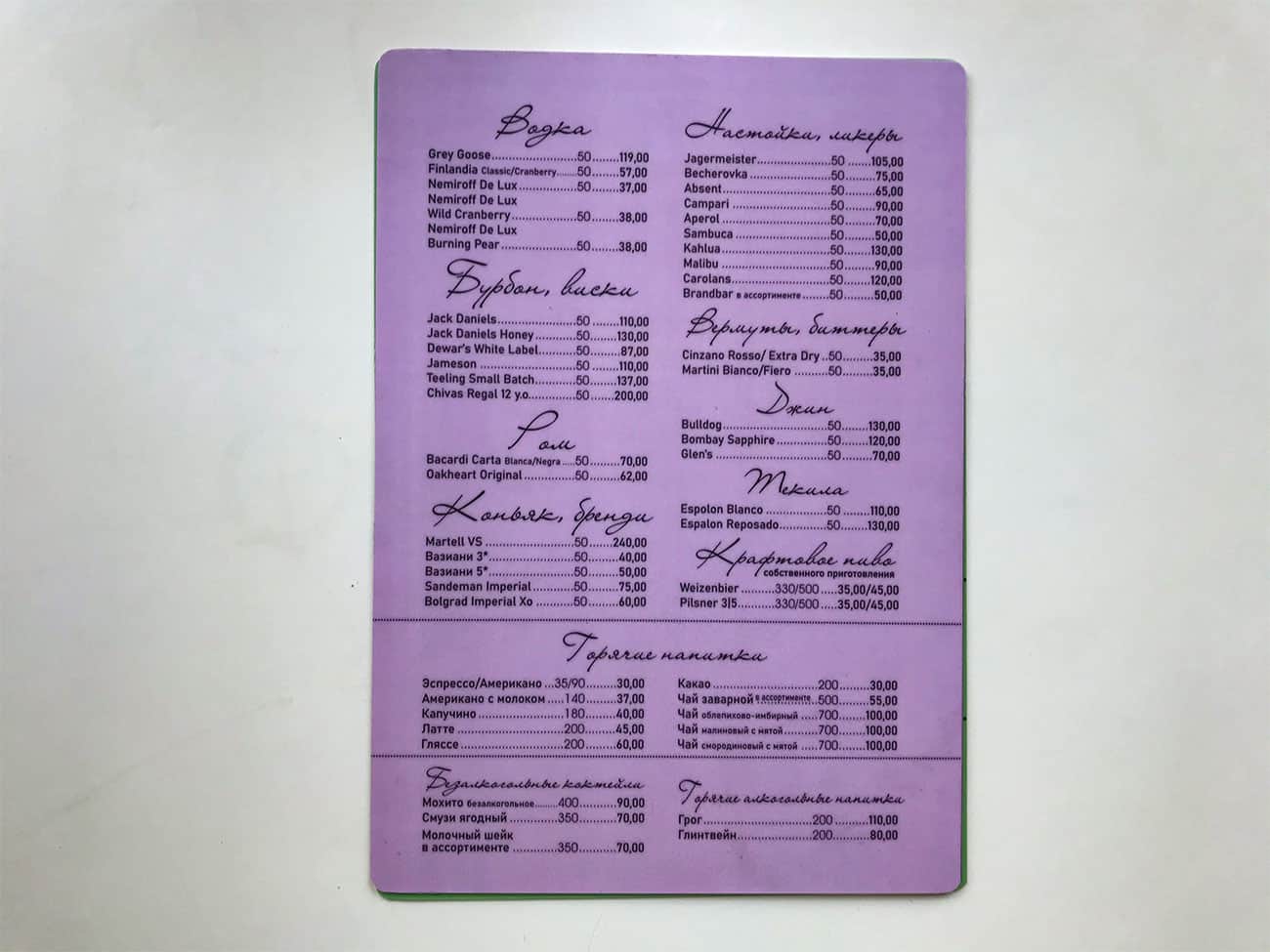 Также есть широкий выбор коктейлей и шотов на основе перечисленных выше напитков. А если же вы предпочитаете сопровождать ужин безалкогольными напитками, то их в ресторане тоже большое количество. Это касается и коктейлей, и горячих напитков.