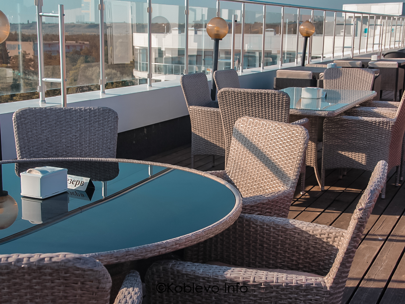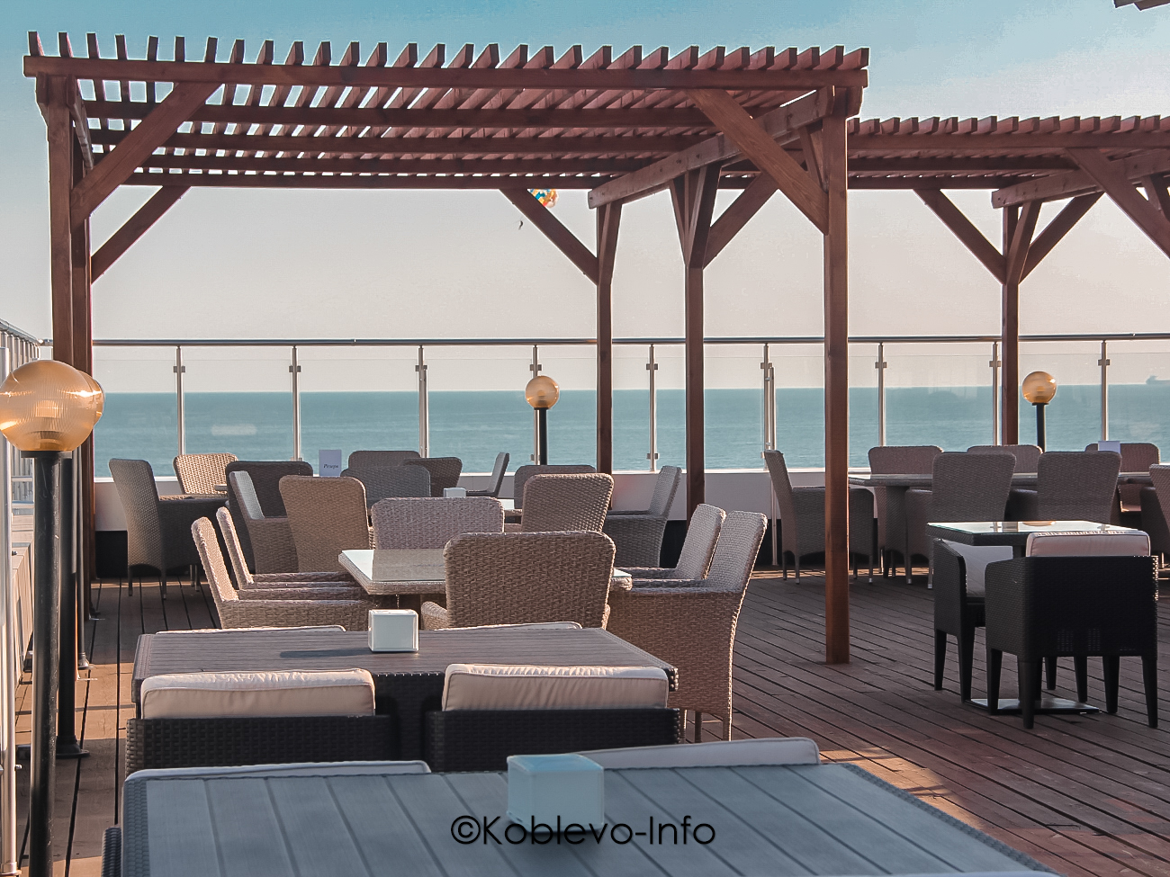 Ресторан Небо в Коблево находится прямо на крыше отеля Де Ла Вита. Он же расположился на первой линии от моря. Поэтому шикарный вид на побережье будет сопровождать вас на протяжении всей трапезы. Стоит отметить, что попасть в заведение может абсолютно любой отдыхающий, который даже не является постояльцем отеля. Забронировать столик можно по номеру телефона отеля.