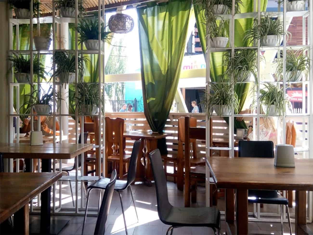 Как мы говорили ранее, в сети кафе преобладает домашняя кухня. Блюда готовят из свежих продуктов и сезонных овощей. Так как поток отдыхающих достаточно велик, линия раздачи регулярно пополняется свежеприготовленными порциями. В кафе можно заказать: