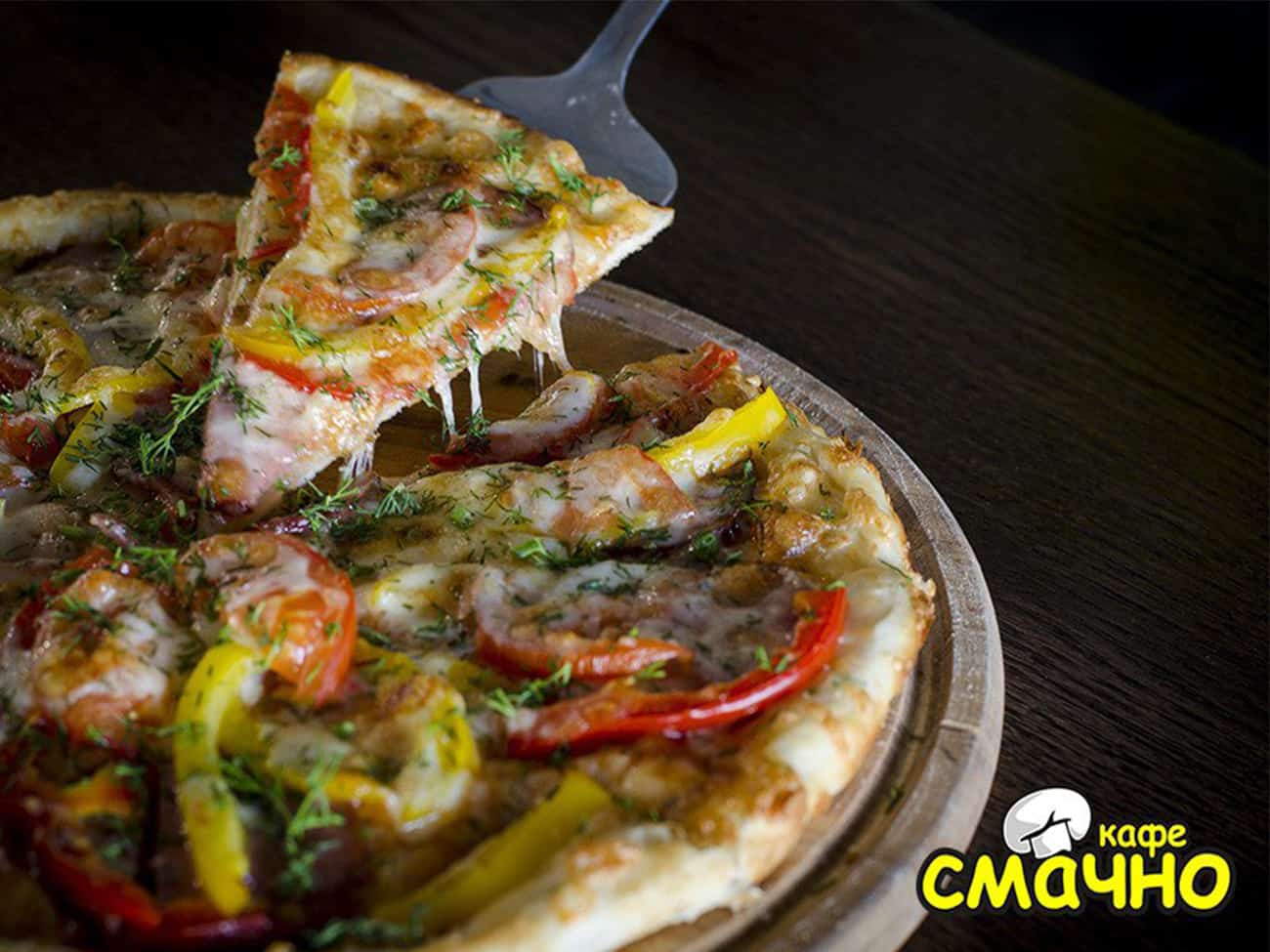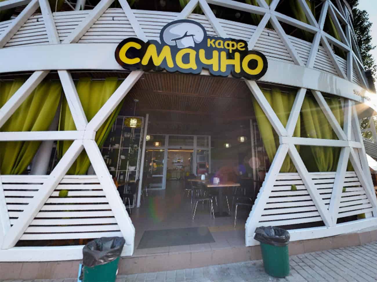 Здесь кафе работает круглогодично без выходных с 08:00 до 00:00. Несмотря на то, что рядом находится рынок и чебуречная, кафе «Смачно» пользуется большой популярностью. Сюда приходят пообедать и просто отдохнуть как местные жители, так и приезжие. Просторный зал с уютными столиками радушно принимает гостей. Еда находится на линии раздачи, поэтому посетители легко могут выбрать блюдо по душе. Также стоит отметить, что за каждое блюдо указана цена. То есть вы сразу можете распланировать свой бюджет на завтрак, обед или ужин. помимо блюд домашней кухни в кафе «Смачно» готовят великолепную ароматную пиццу, которую можно не только скушать на месте, а также забрать с собой.
