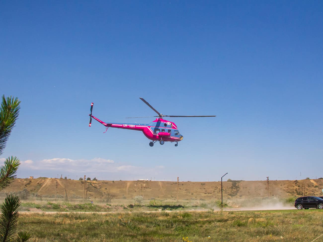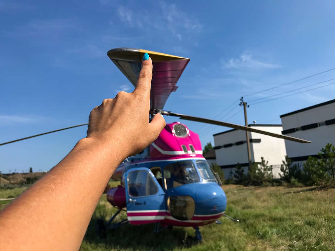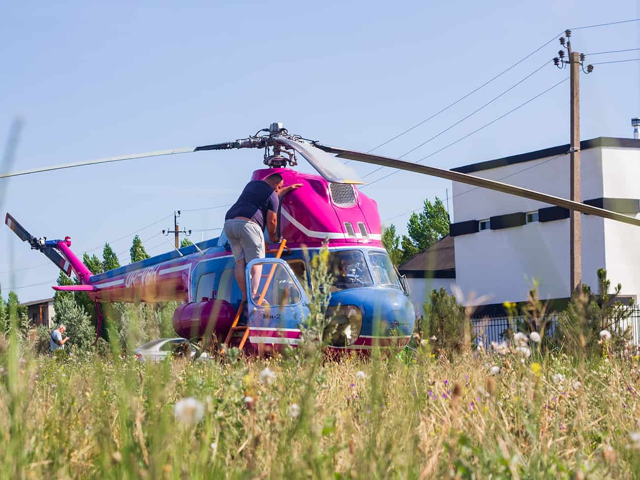 Площадка для отправки вертолета находится возле коттеджного комплекса White Villas в Коблево. Здесь есть небольшое поле, откуда удобнее всего взлетать вертолету. Также стоит отметить, что это место совсем безлюдное, ведь безопасность — превыше всего.