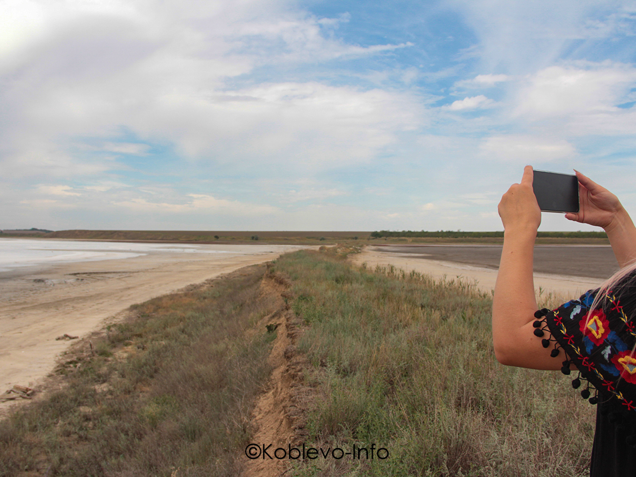 После того как вы собственными глазами увидите ветряную электростанцию, группа отправляется на следующую локацию. И это соляное озеро Тузлы. На самом деле еще не так много туристов и гостей курорта Коблево знают об этом удивительно красивом месте. И это позволяет оставаться озеру поистине уникальным явлением. Много людей здесь точно не встретить. Как правило, сюда приходят местные жители или экскурсионные группы. Здесь, к слову, происходит удивительный процесс — естественное месторождение соли. Его также называют прудом. Он находится в Березанском районе у побережья Черного моря.