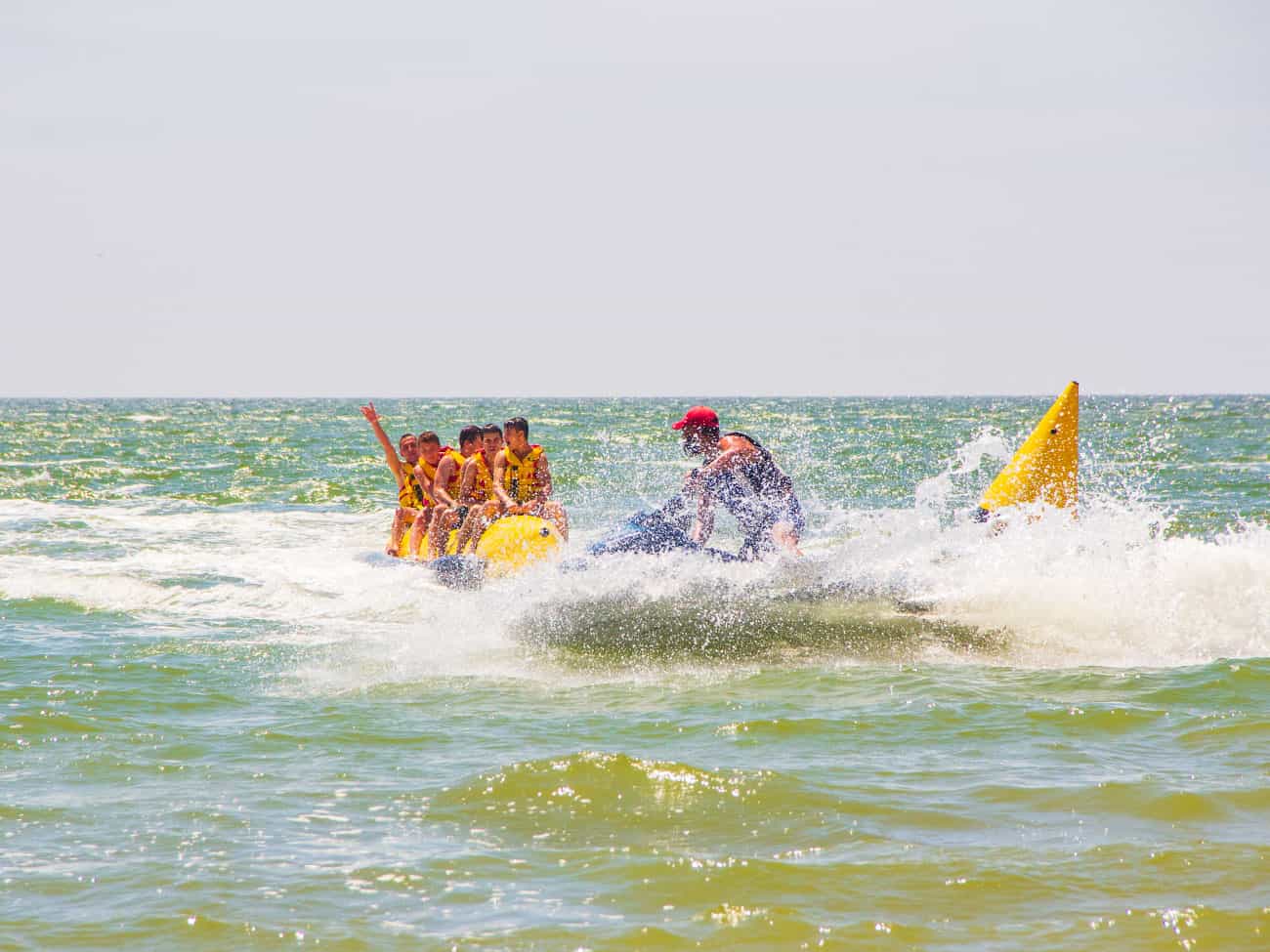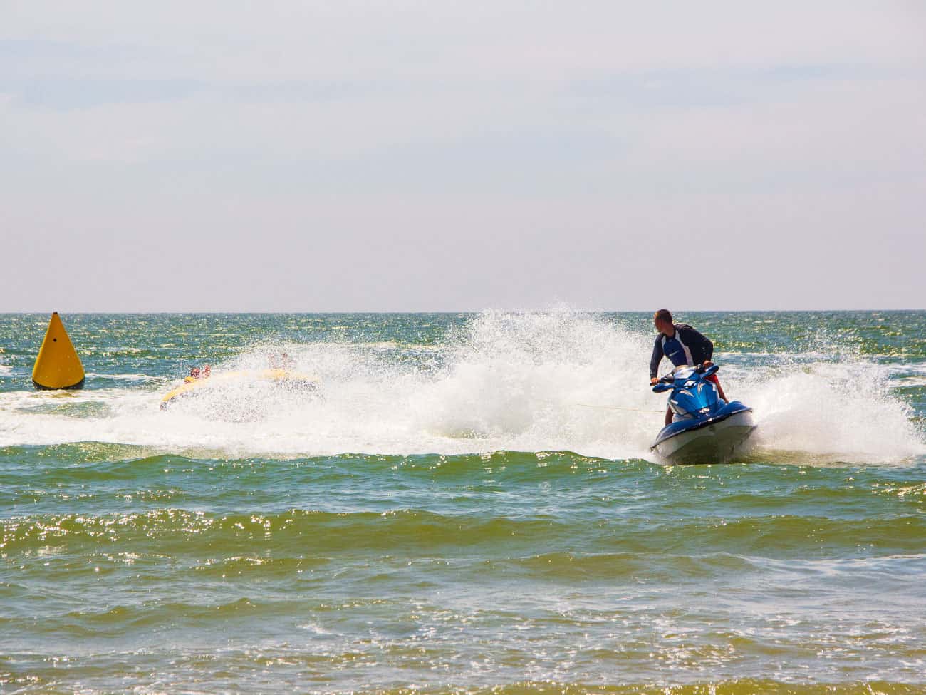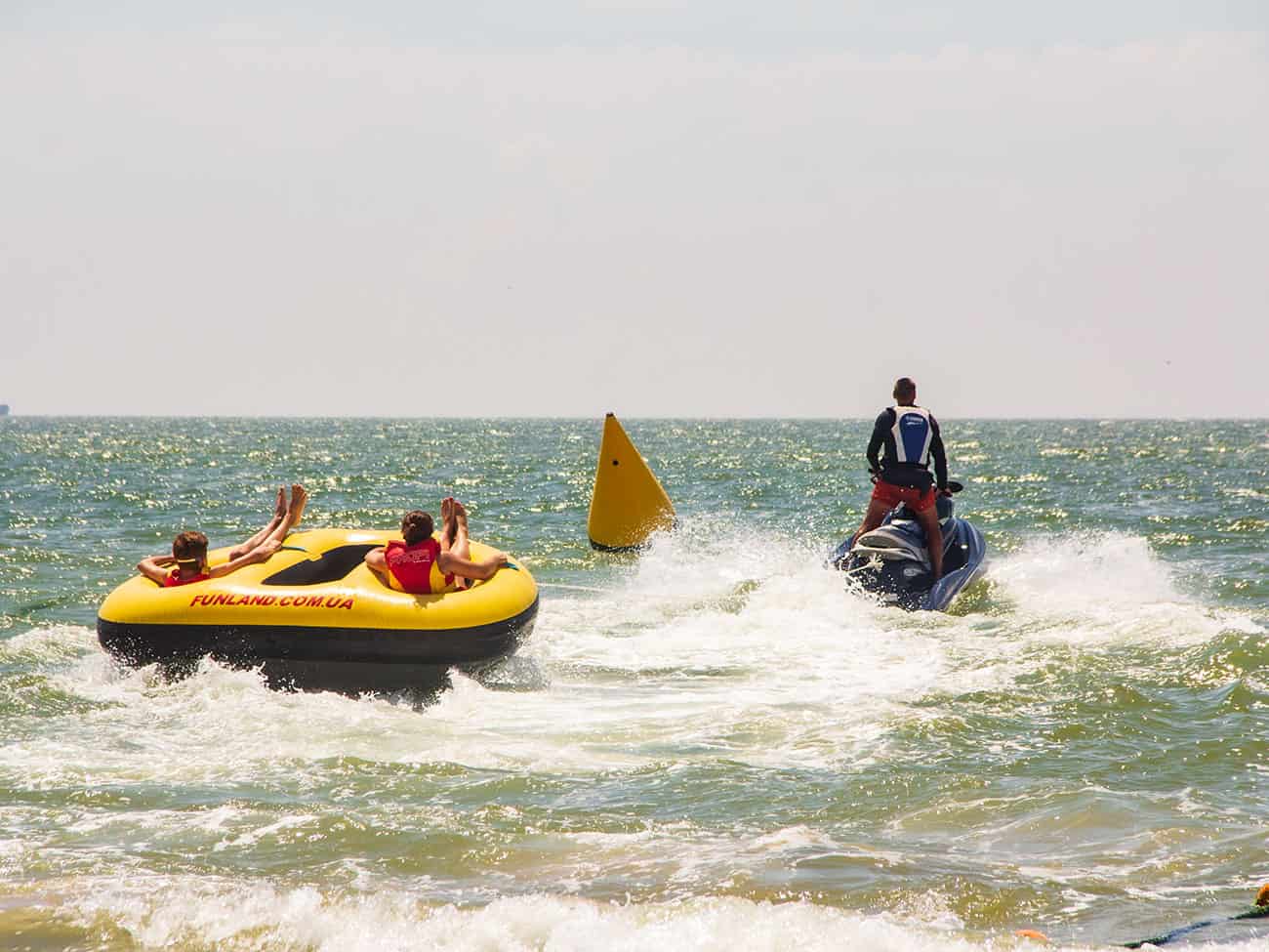 Кстати, если вы не хотите кататься днем, когда солнце максимально палящее, тогда можно выделить время на вечер. По технике безопасности на водных аттракционах можно кататься вплоть до 8 вечера. Поэтому смело можете отправляться на море, когда погода будет чуть ласковее, чтобы получить максимум от катания на водных аттракционах.