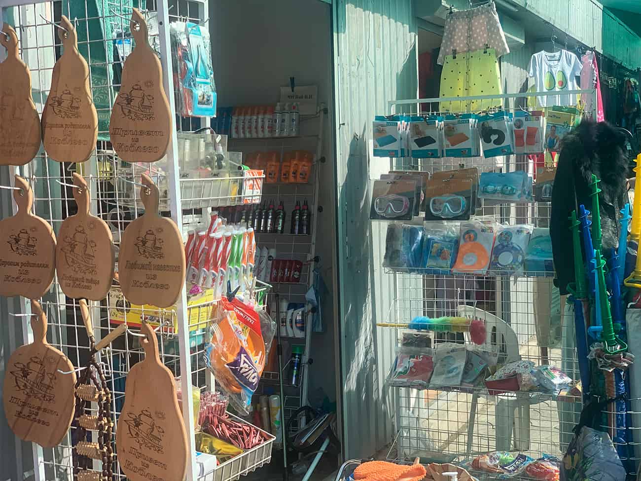 Рыночная аллея возле Связиста в Коблево располагает и точками с продажей средств от насекомых, а также для безопасного загара. Ну и пляжной атрибутики здесь полно. К примеру, можно найти маски для плавания под водой, надувные круги и матрасы и так далее. Кстати, на территории рыночной аллеи есть точка, где продают sim-карты, которыми можно воспользоваться даже за пределами Украины.