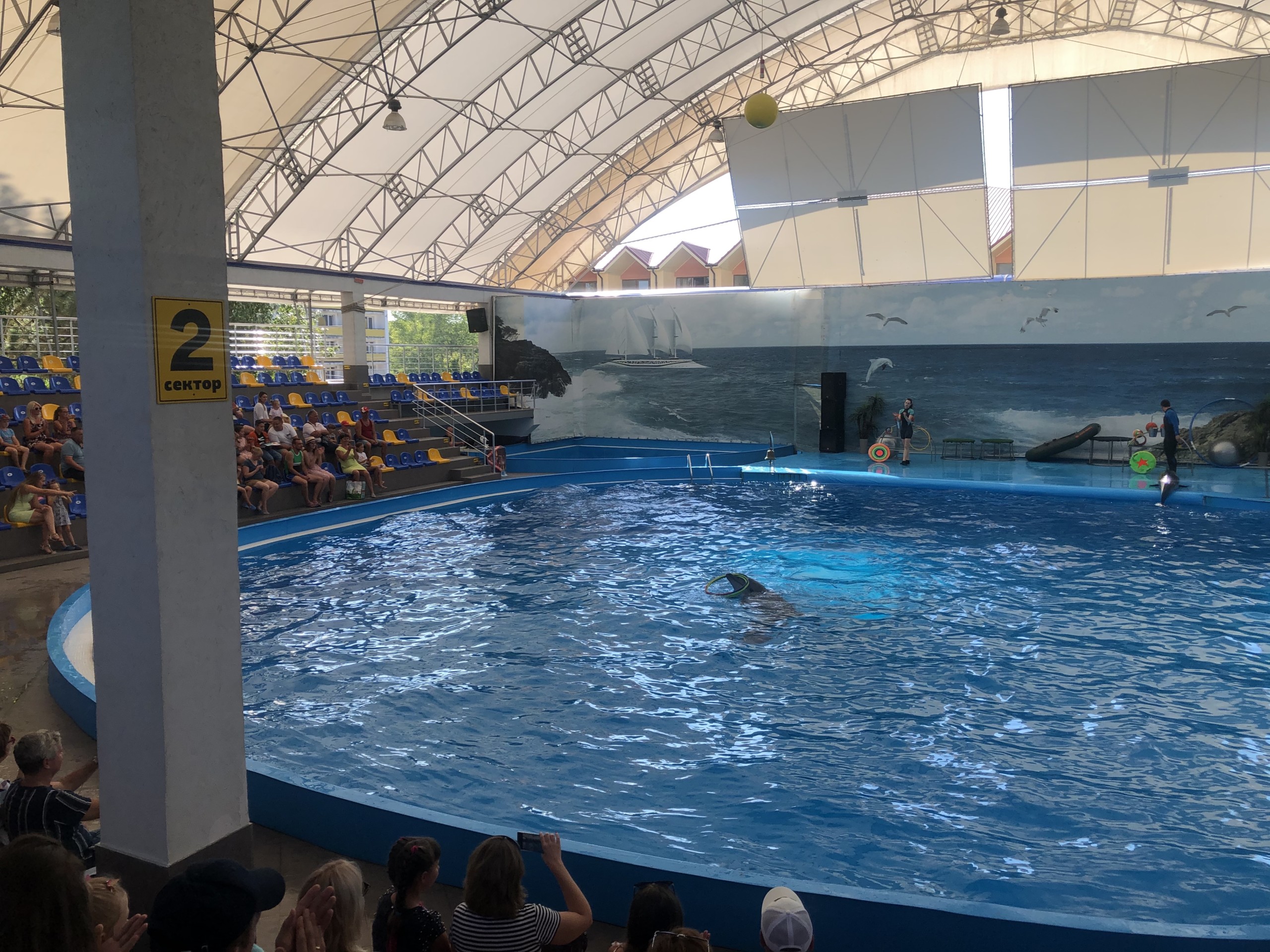 В Коблево 17.08.2020 мы сфотографировали атмосферу дельфинария во время проведения шоу. А также и сняли небольшой видеообзор. Стоит отметить, что на видео эксклюзивный танец дельфинов!