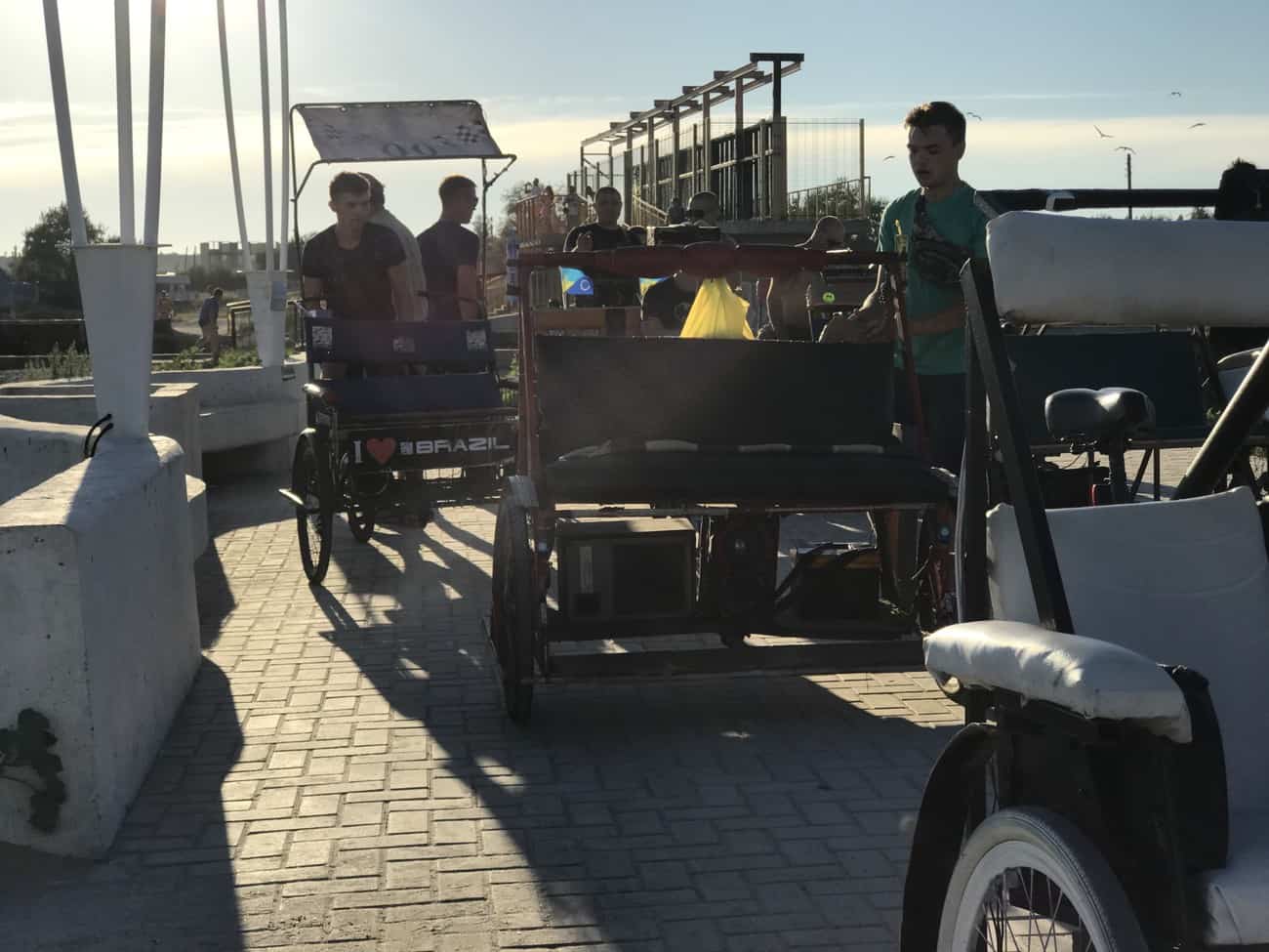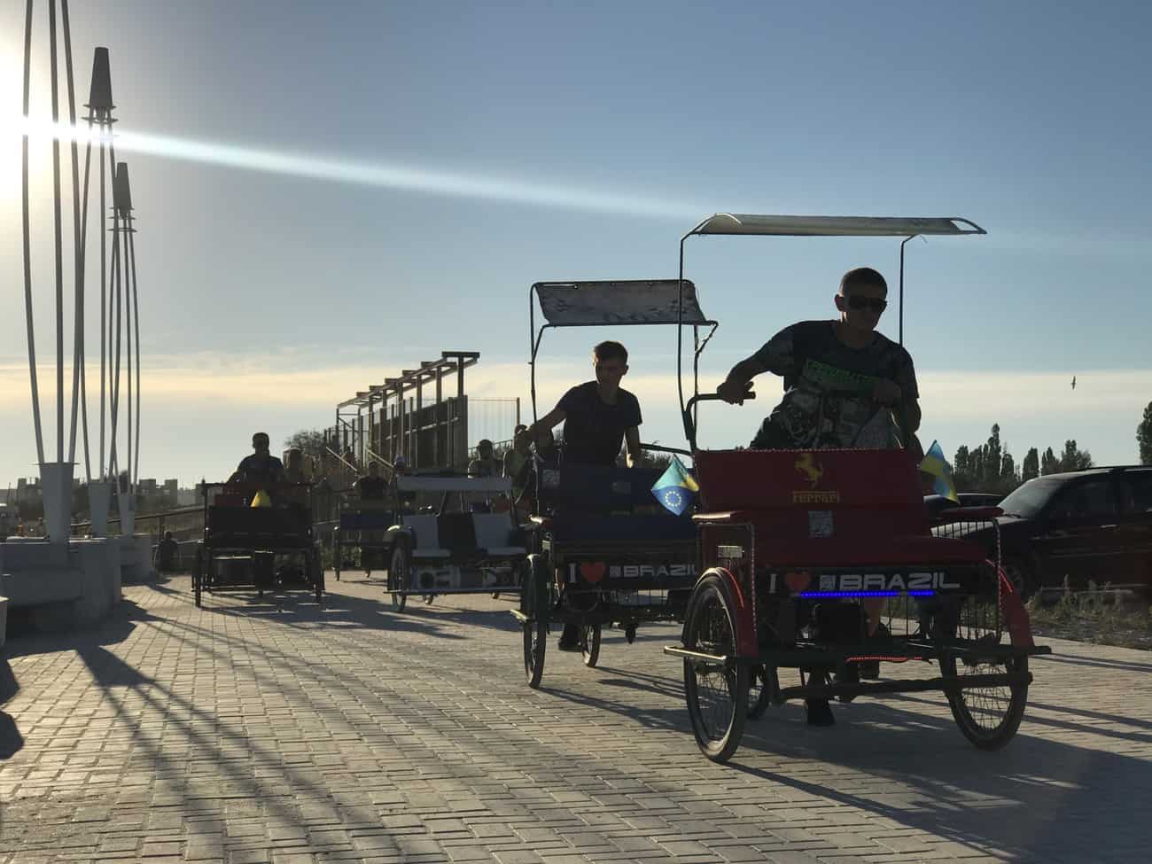 Ближе к полудню на Курортном проспекте прошел традиционный парад автомобилей. Сигнал автомобилисты подавали беспрерывно. Звук был слышен даже вдали от проспекта, на самых отдаленных базах отдыха. А вот велорикши решили провести парад ближе к вечеру. Перед наступлением заката колонны рикш проехали на Пальм авеню на территории Молдавских баз. Все это сопровождалось дымовым шоу в цветах украинского флага, а также патриотичными песнями.