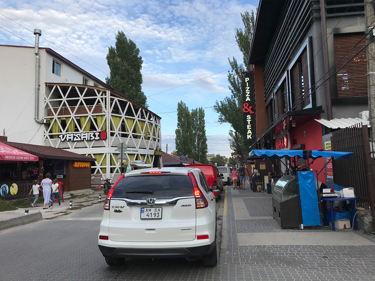 Несмотря на то, что уже заканчивается лето, все заведения, которые попали в объектив нашей камеры в Коблево 20.08.2020, полноценно работают и принимают гостей. Так что еще не поздно приехать на отдых в Коблево и насладиться отдыхом без ограничений.