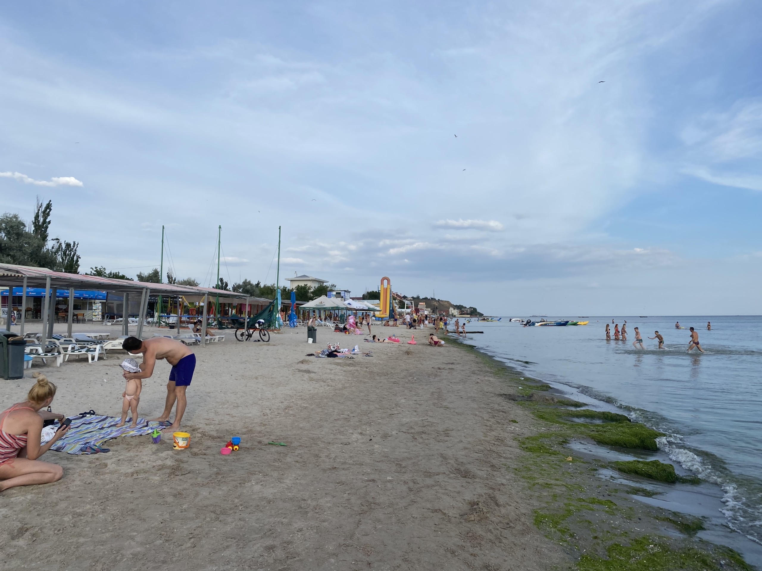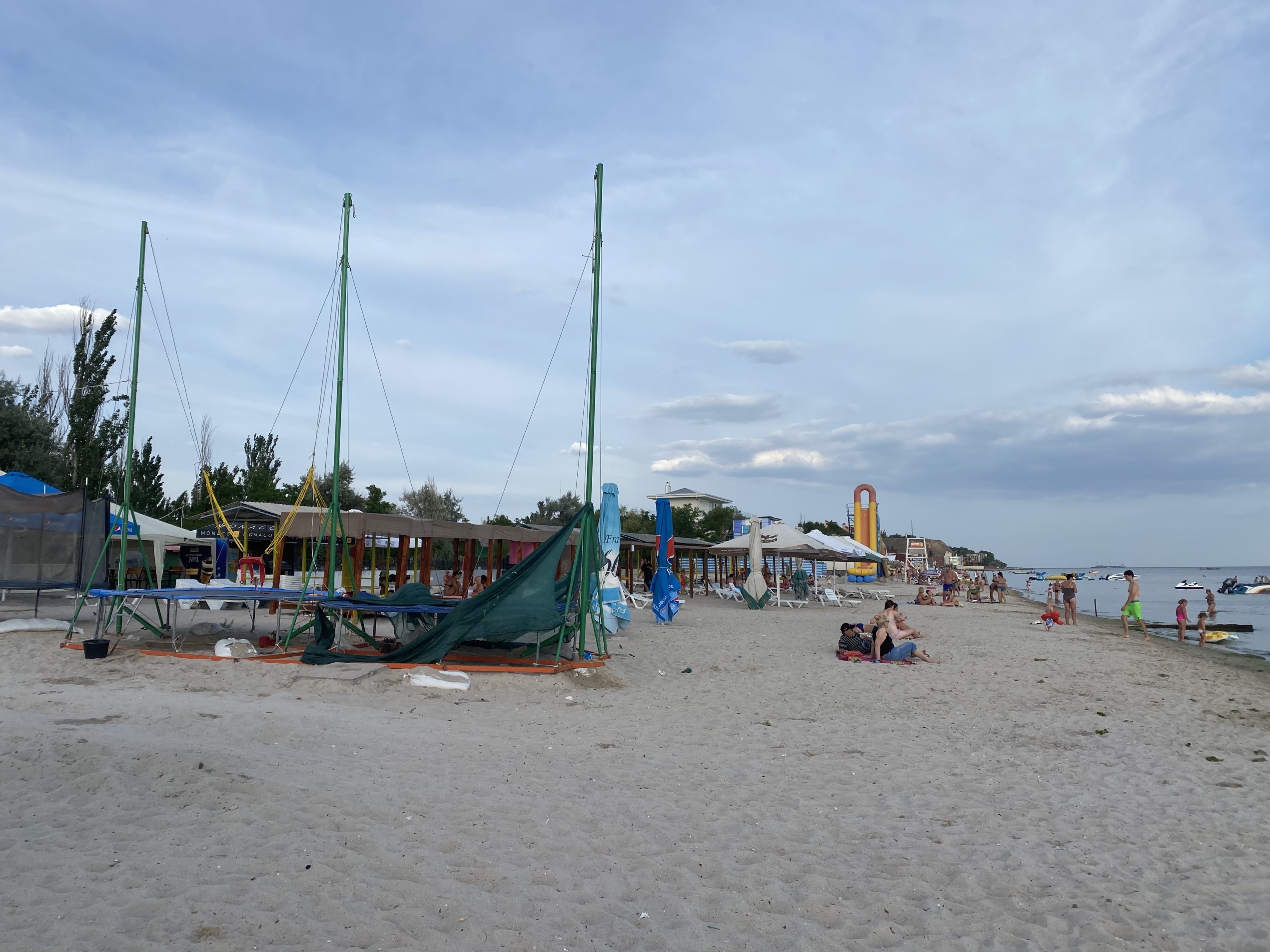 К слову, в это время нам и удалось сделать кадры и снять видео. Кое-кто из курортников решил прокатиться на популярном водном аттракционе Бэтмен. Кстати, на пляже возле отеля Де Ла Вита достаточно много подобных развлечений. А некоторым было по душе посвятить день в Коблево 27.07.2020 простому релаксу на лежаке с освежающим напитком из ближайшего бара. В общем, все нашли себе занятие по душе.