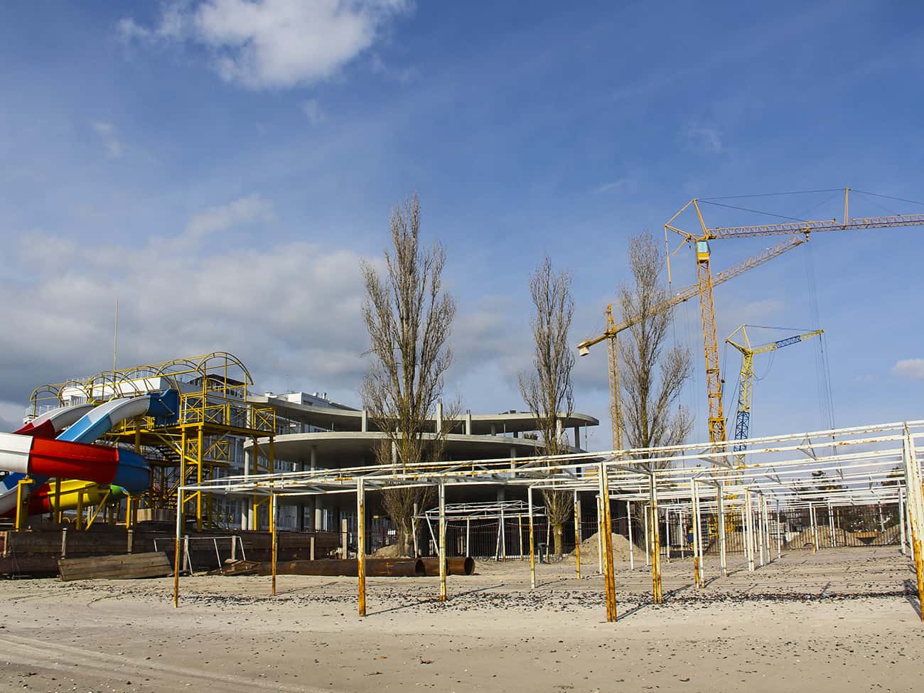 Краны, стройка и новое здание возле отеля Де Ла Вита